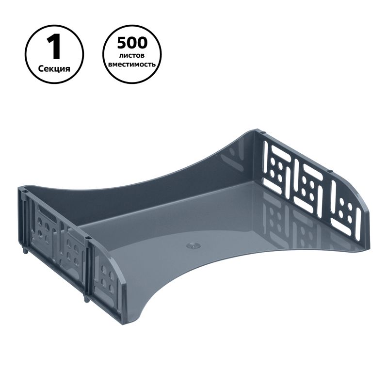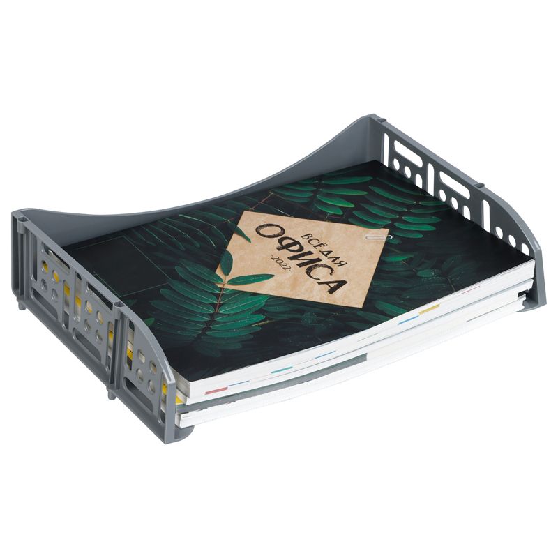 Лоток для бумаг горизонтальный СТАММ "Field", широкая загрузка, серый