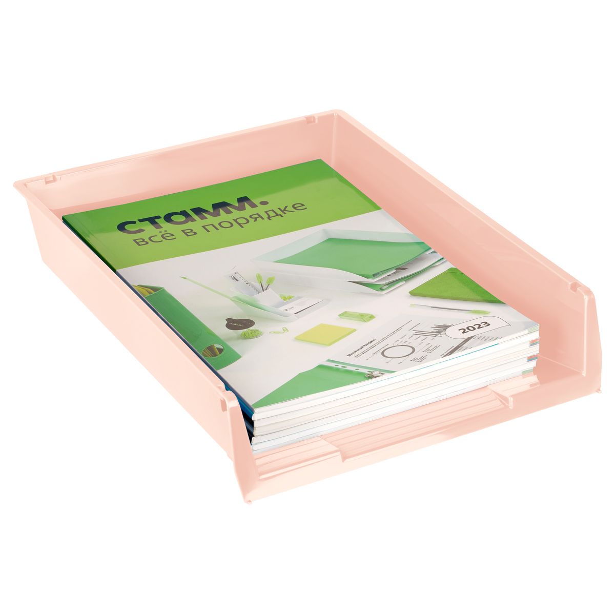 Лоток для бумаг горизонтальный СТАММ "Респект", сетчатый, розовый