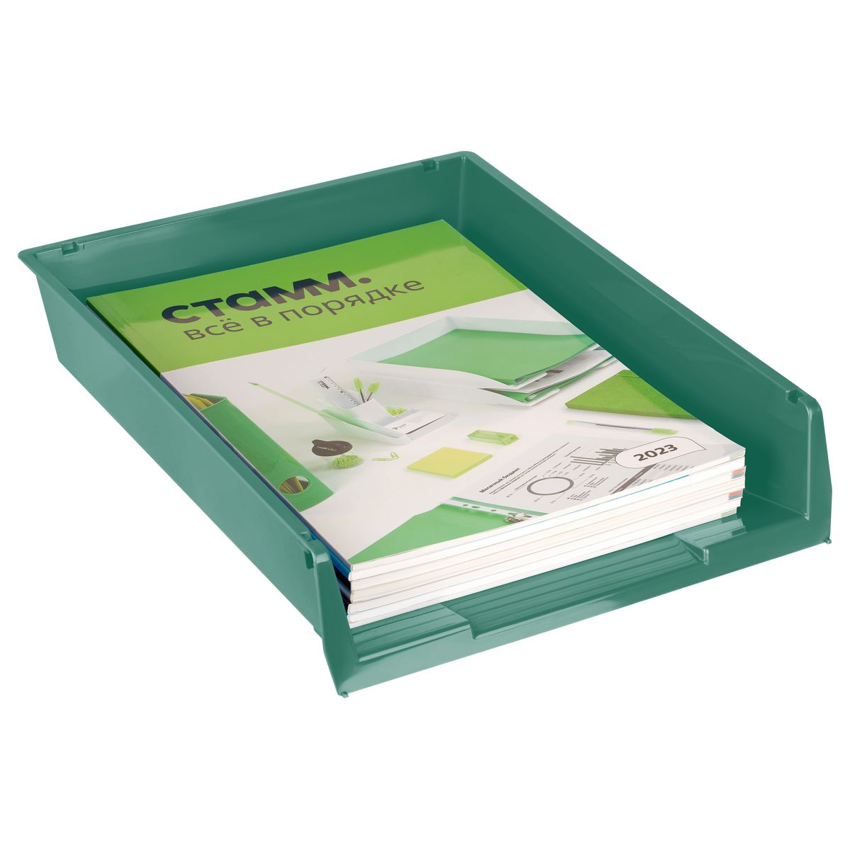 Лоток для бумаг горизонтальный СТАММ "Респект", сетчатый, темно-зеленый