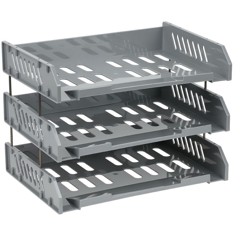 Лоток для бумаг горизонтальный СТАММ "Сити", набор 3шт., на мет. стержнях, широкая загрузка, серый