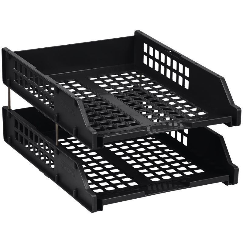 Лоток для бумаг горизонтальный СТАММ "Strong", набор 2шт., на метал. стержнях, черный