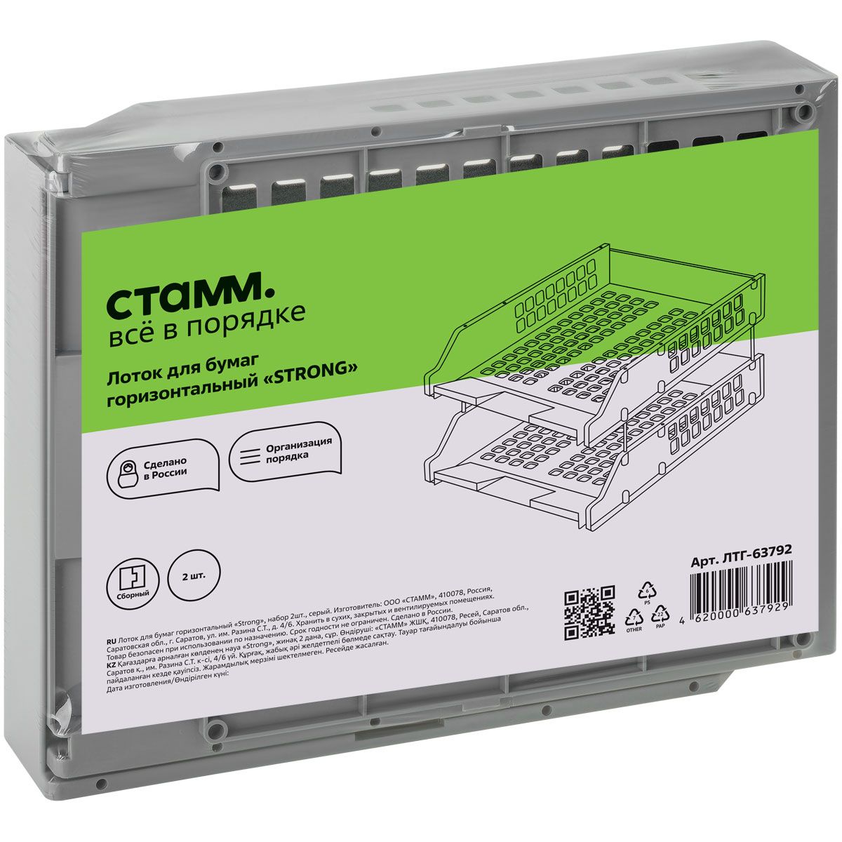 Лоток для бумаг горизонтальный СТАММ "Strong", набор 2шт., на метал. стержнях, серый