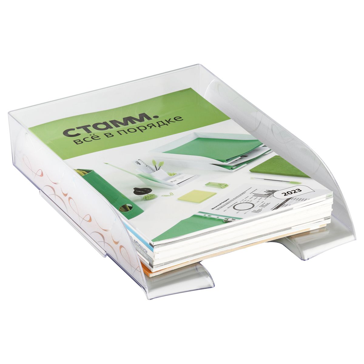Лоток для бумаг горизонтальный СТАММ "Вега", прозрачный