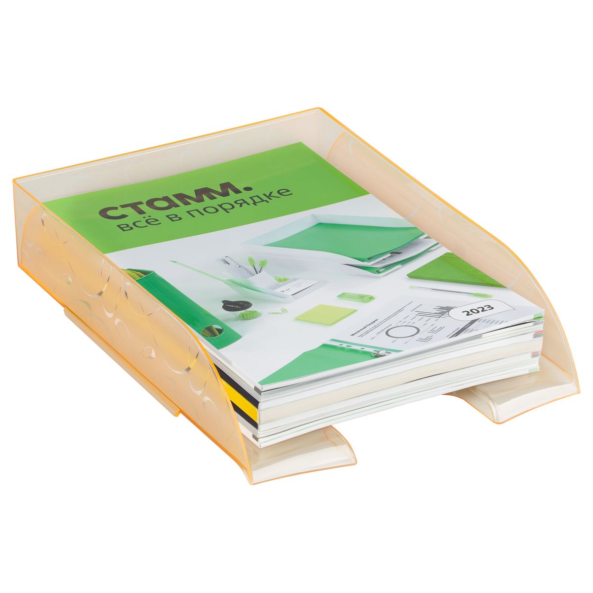 Лоток для бумаг горизонтальный СТАММ "Вега", тонированный неоновый оранжевый