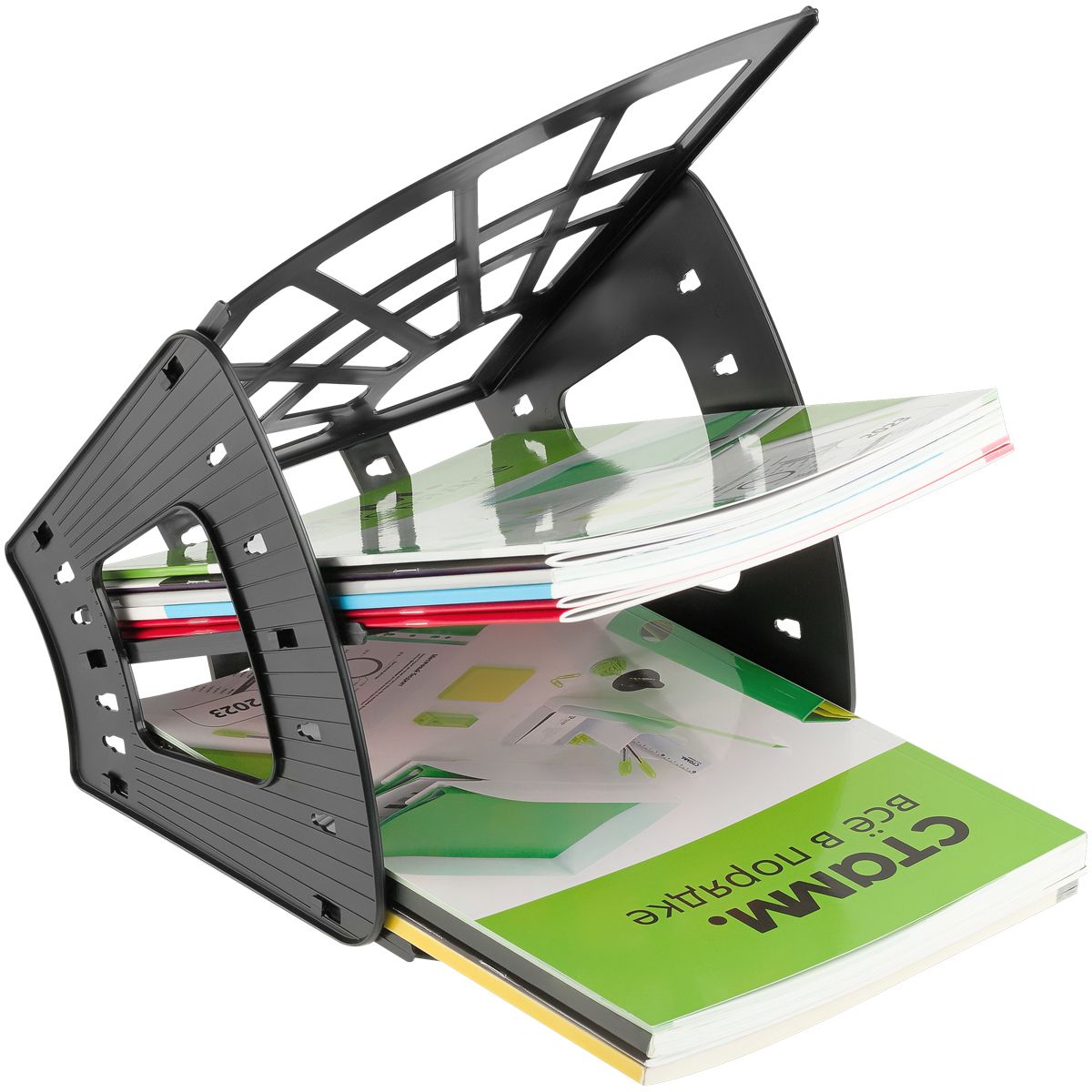 Лоток для бумаг веерный СТАММ "Эконом", 3-х секционный, черный