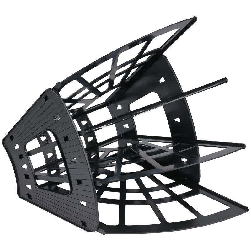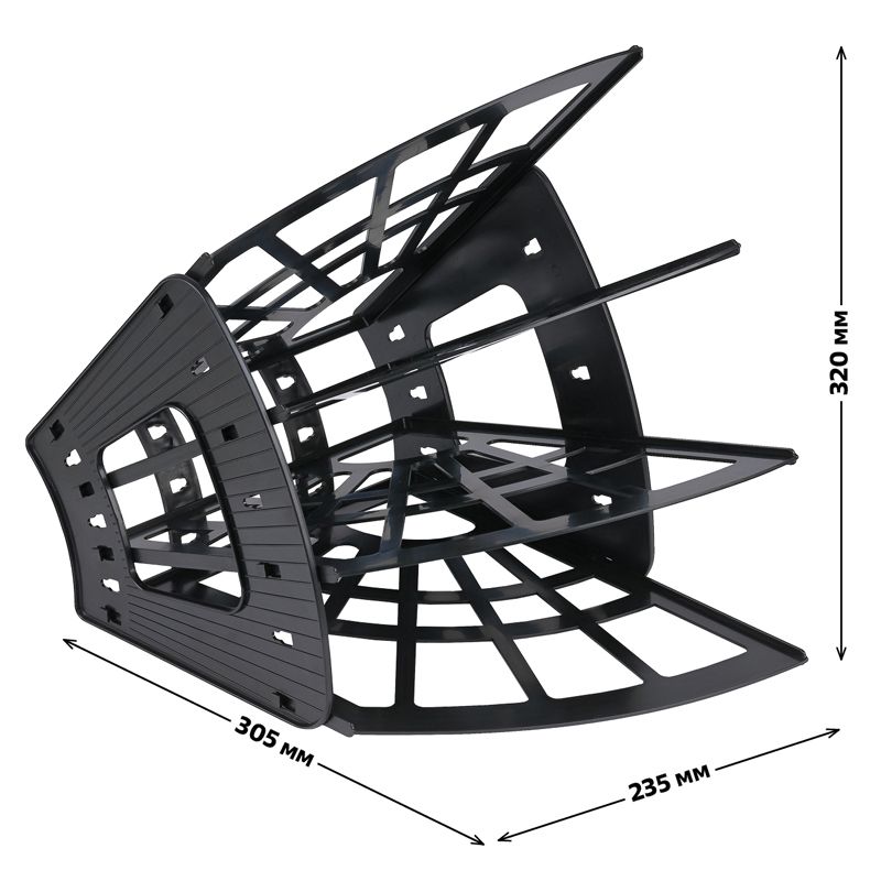 Лоток для бумаг веерный СТАММ "Эконом", 4-х секционный, черный