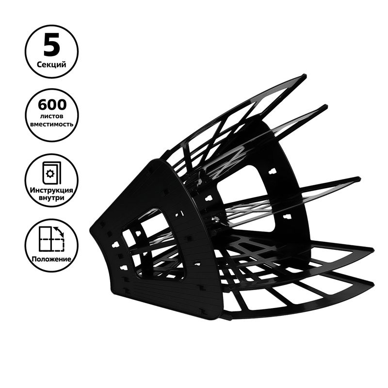 Лоток для бумаг веерный СТАММ "Эконом", 5-ти секционный, черный