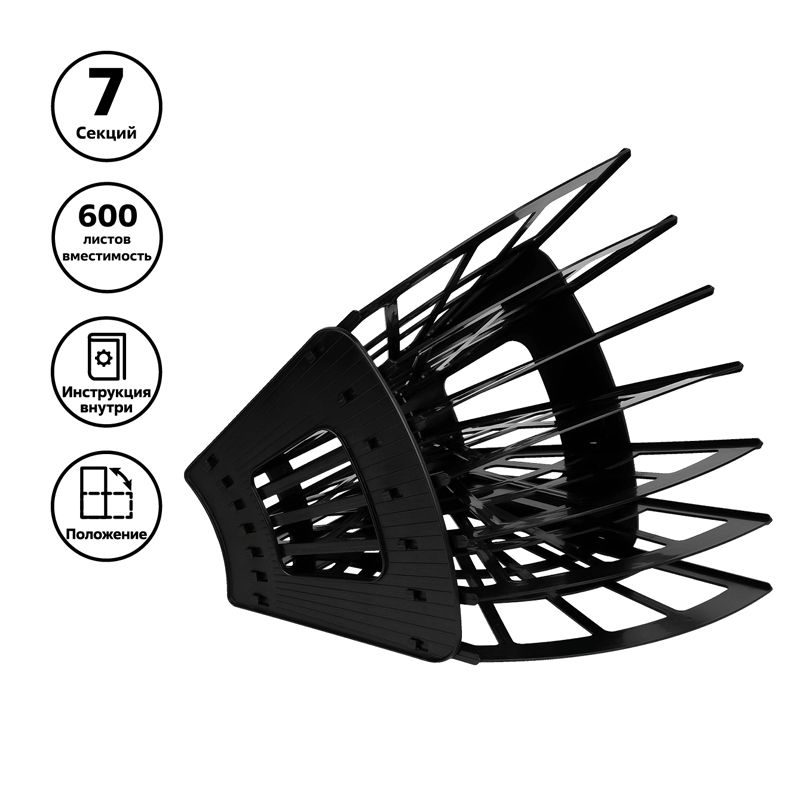 Лоток для бумаг веерный СТАММ "Эконом", 7-ми секционный, черный