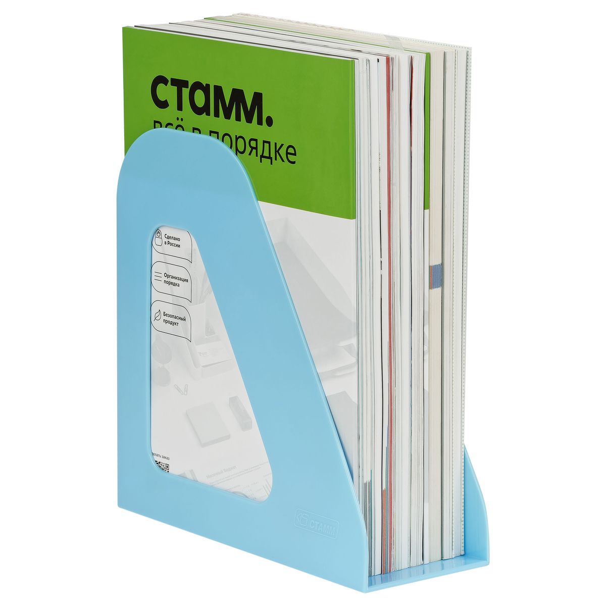 Лоток для бумаг вертикальный СТАММ "Фаворит", голубой, ширина 90мм