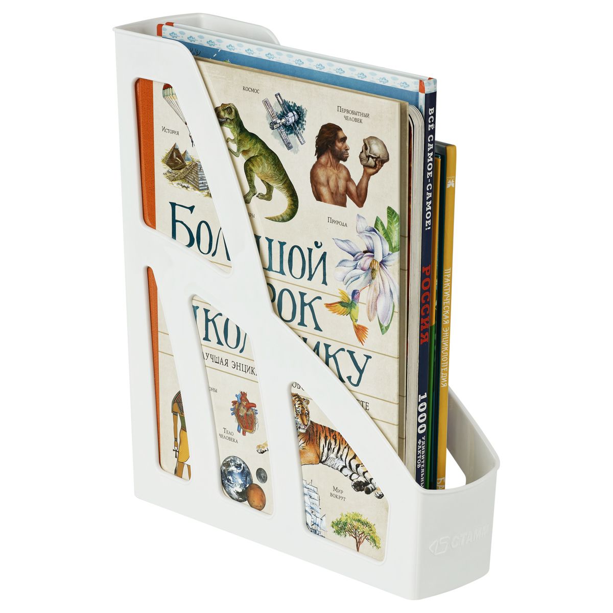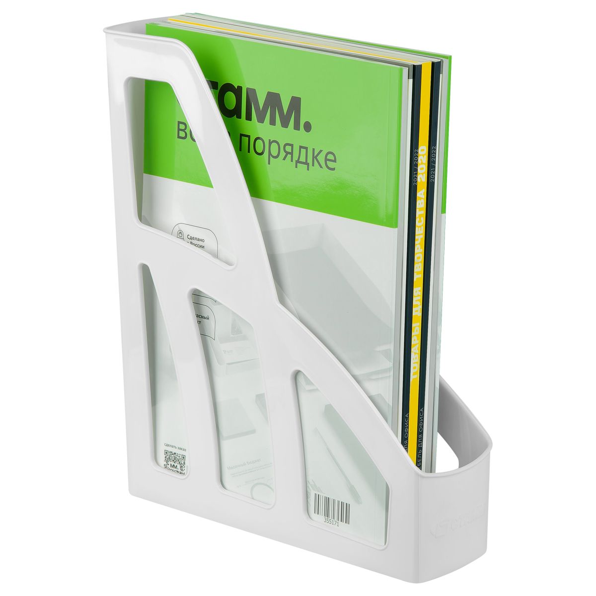 Лоток для бумаг вертикальный СТАММ "Лидер", белый, ширина 75мм