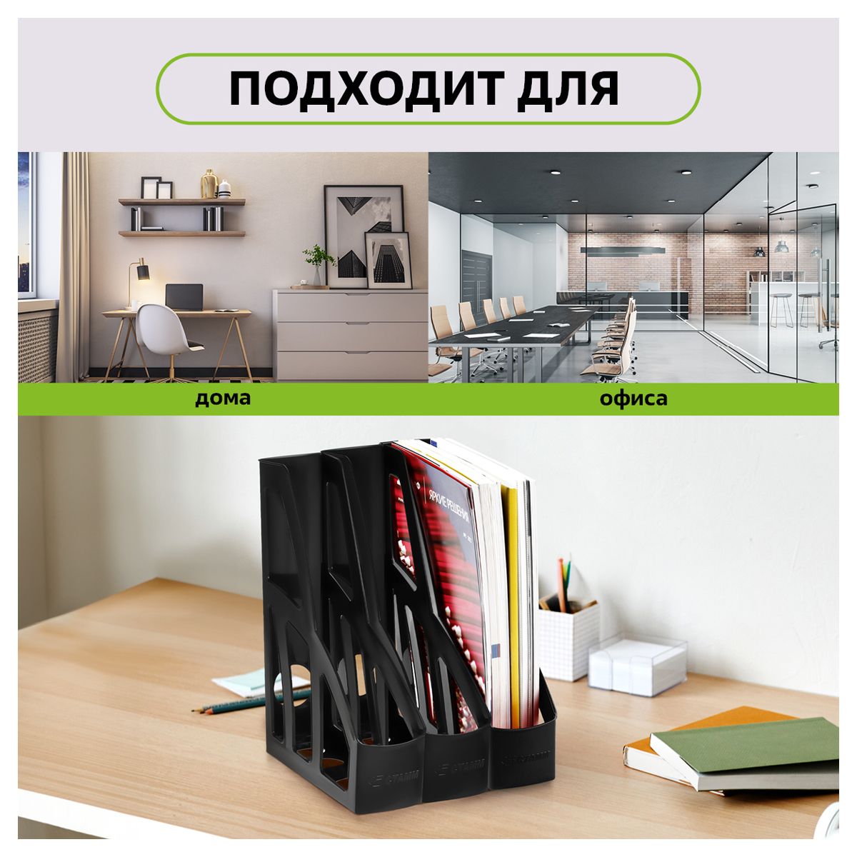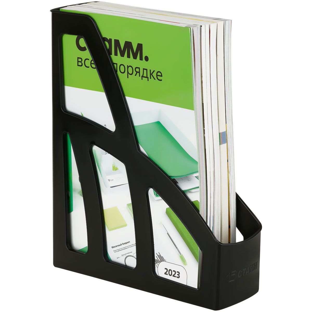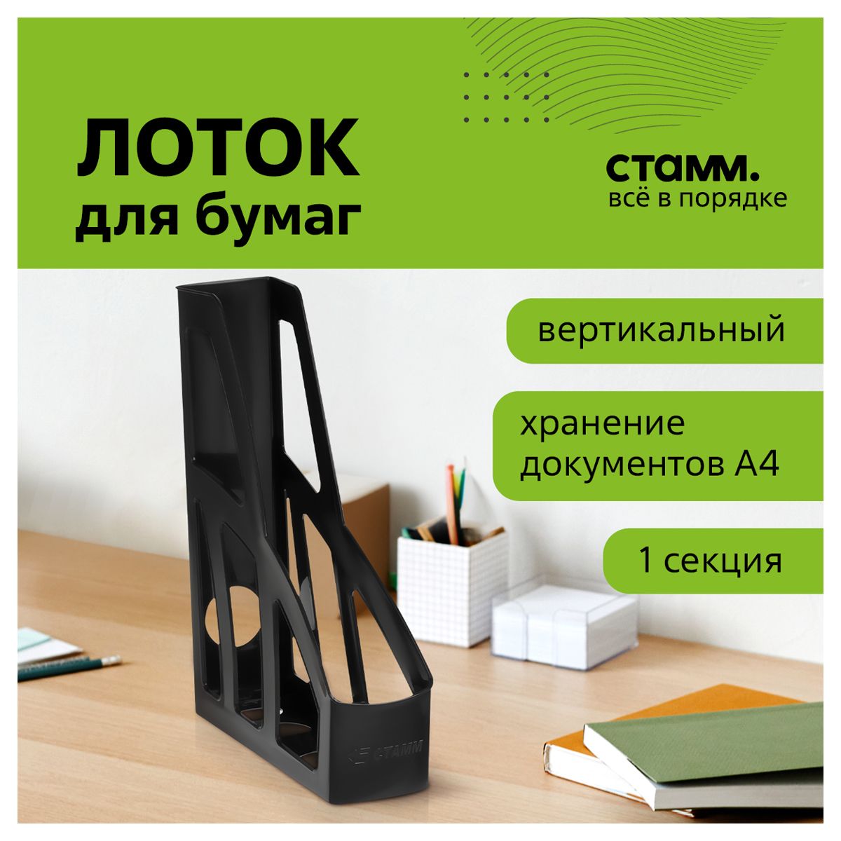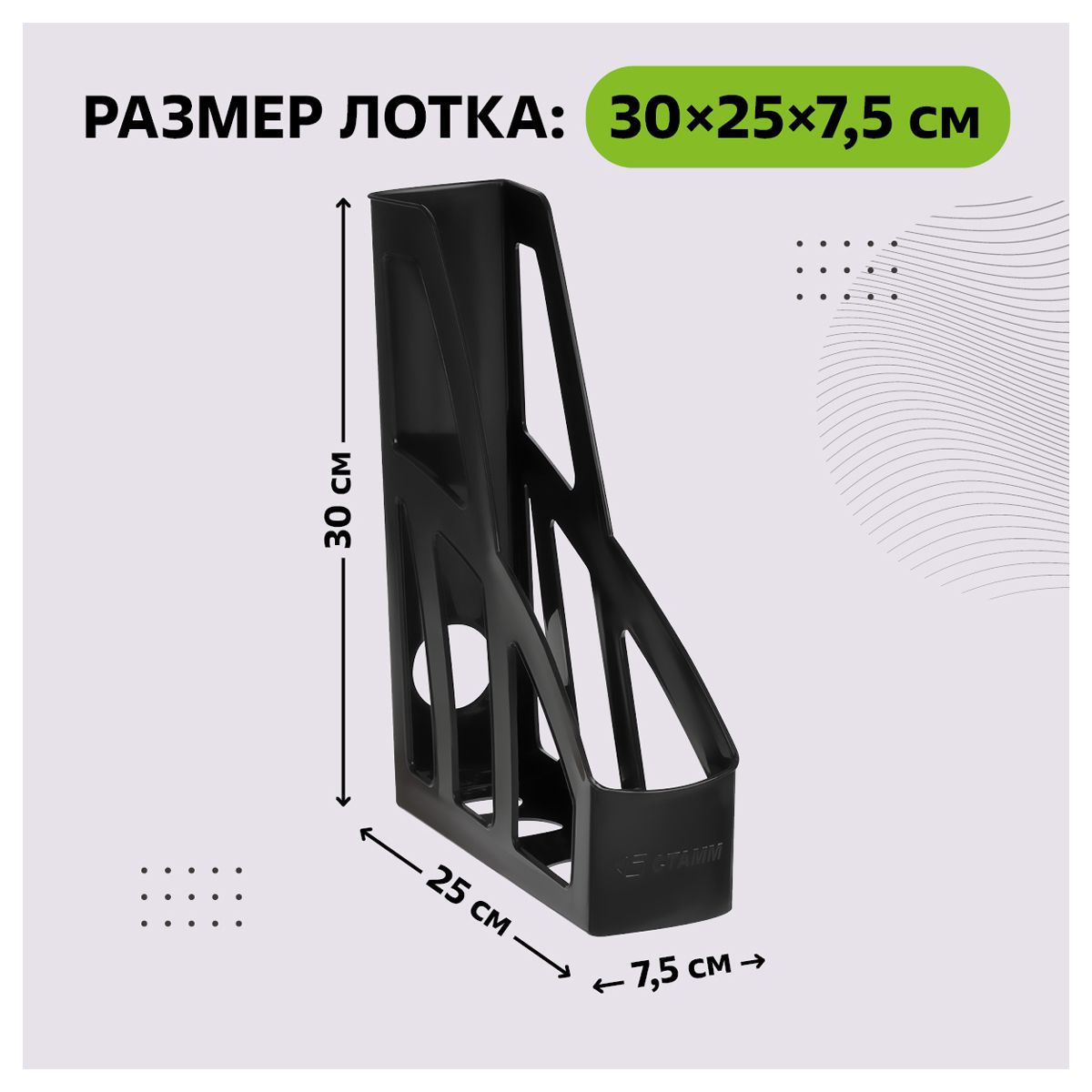 Лоток для бумаг вертикальный СТАММ "Лидер", черный, ширина 75мм