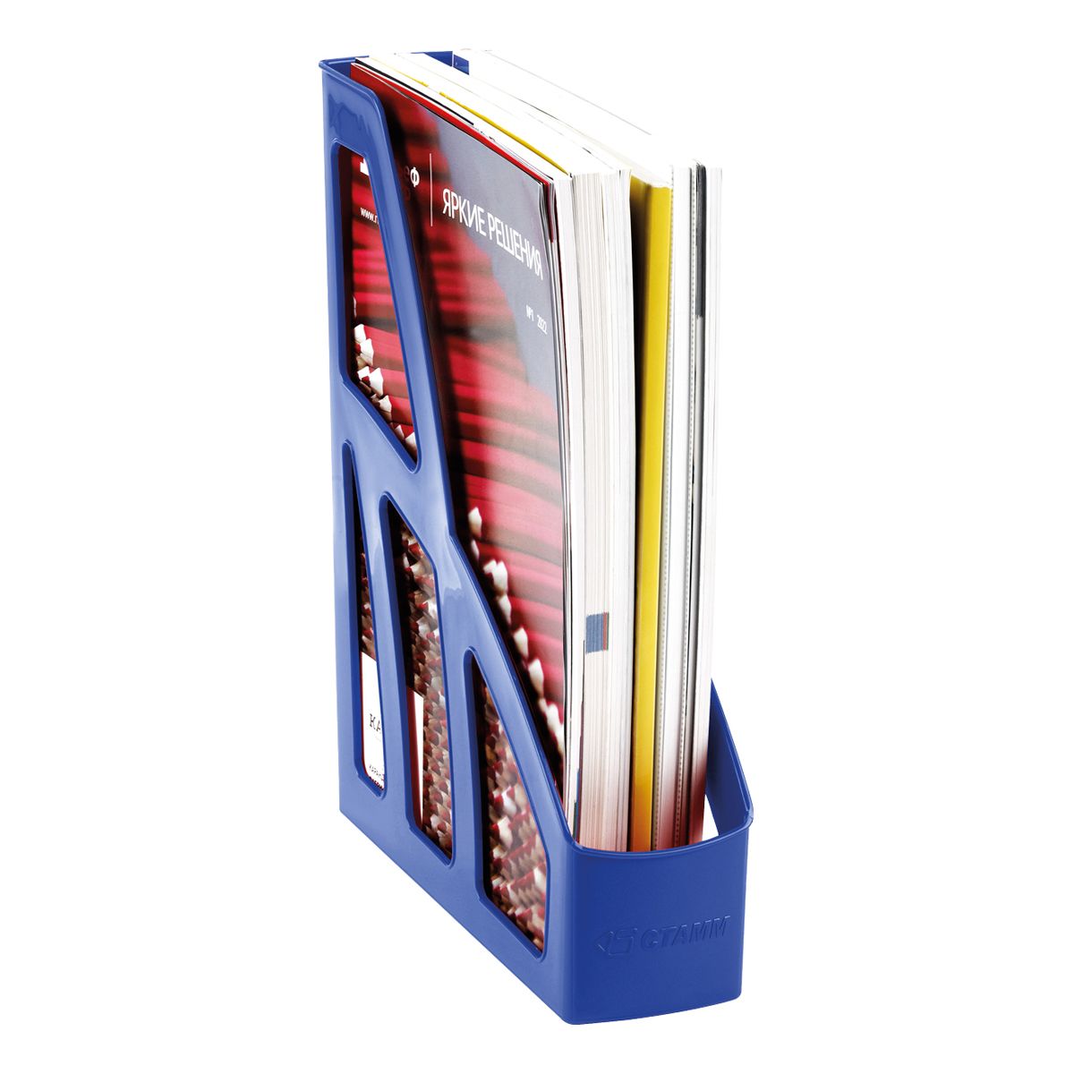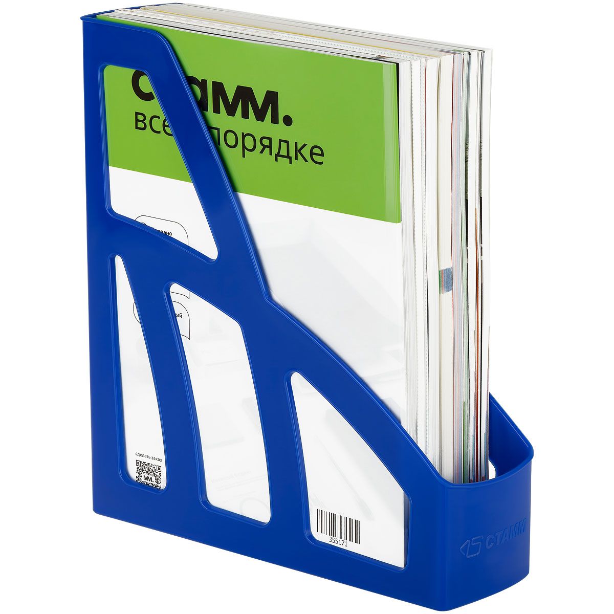 Лоток для бумаг вертикальный СТАММ "Лидер", синий, ширина 75мм