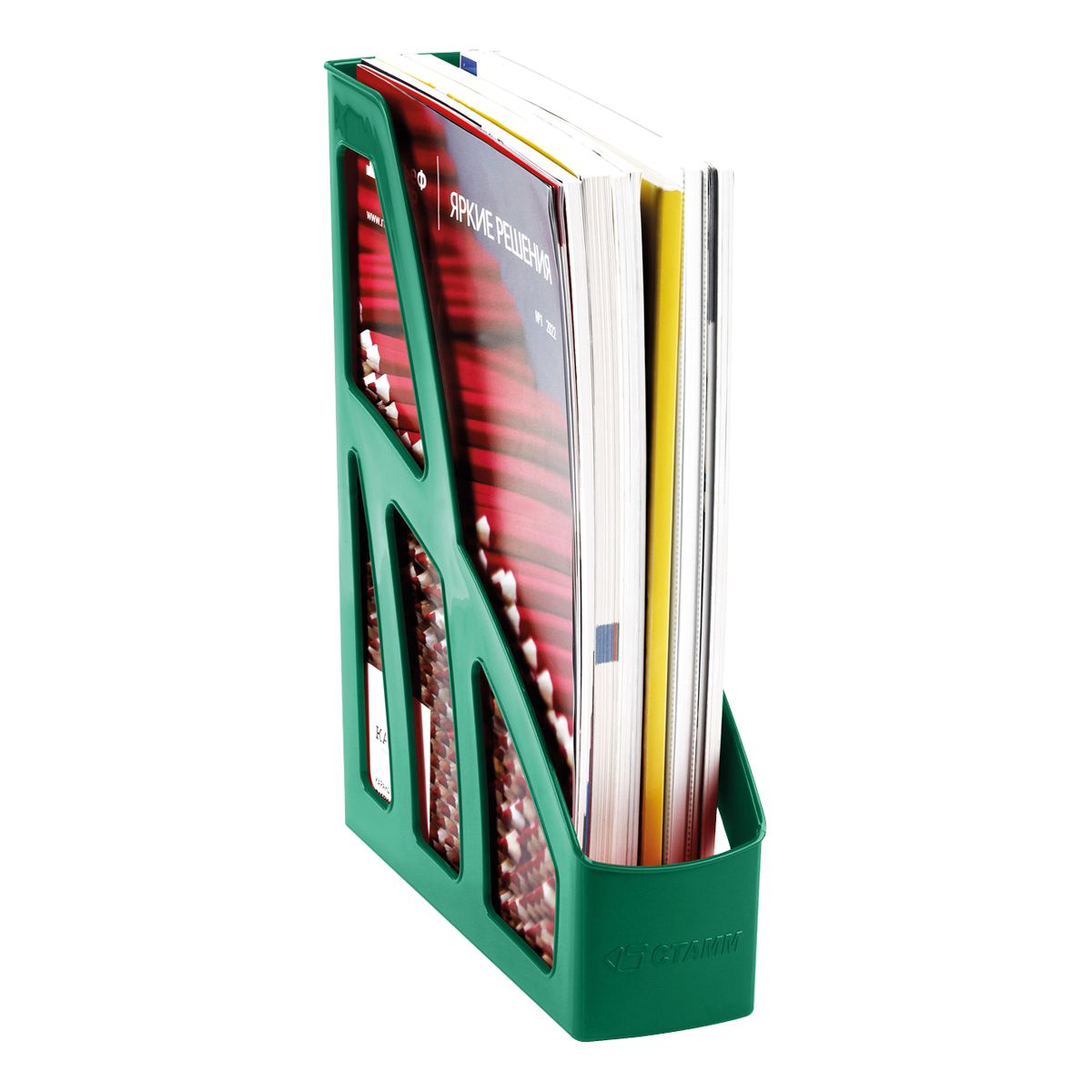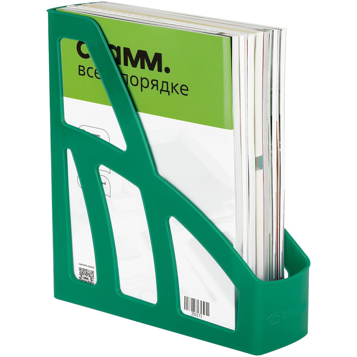 Лоток для бумаг вертикальный СТАММ "Лидер", зеленый, ширина 75мм