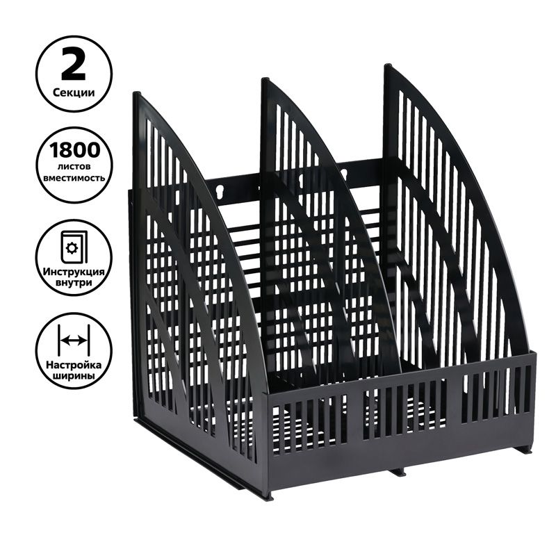 Лоток для бумаг вертикальный СТАММ "Line", сборный, 2 отделения, черный