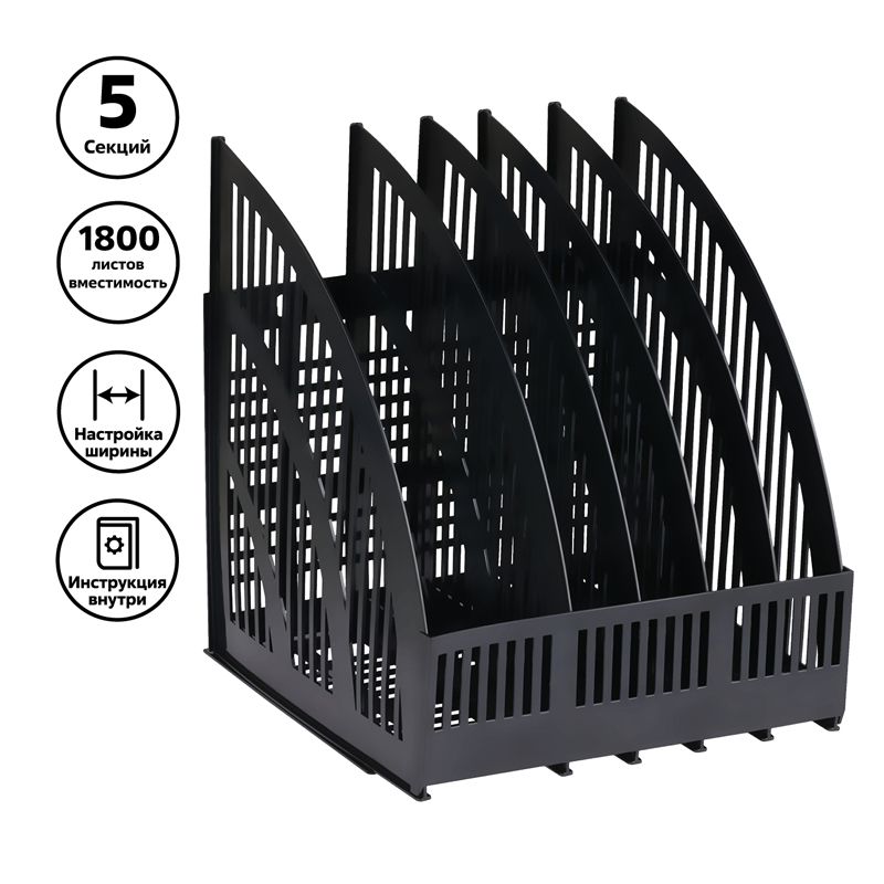 Лоток для бумаг вертикальный СТАММ "Line", сборный, 5 отделений, черный