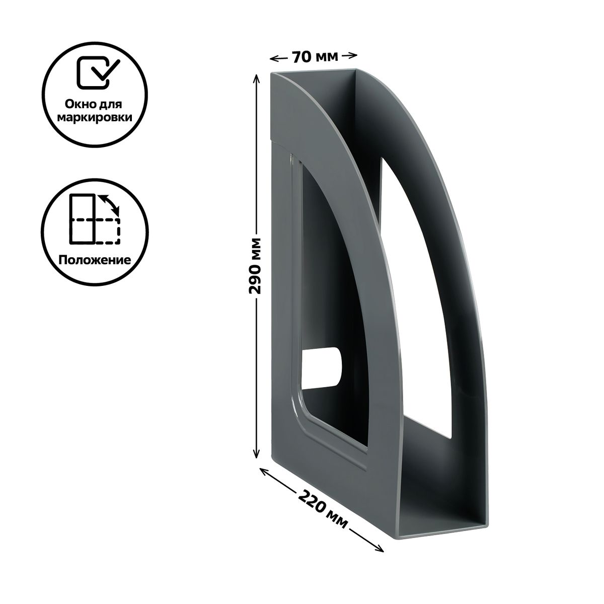 Лоток для бумаг вертикальный СТАММ "Респект", серый, ширина 70мм