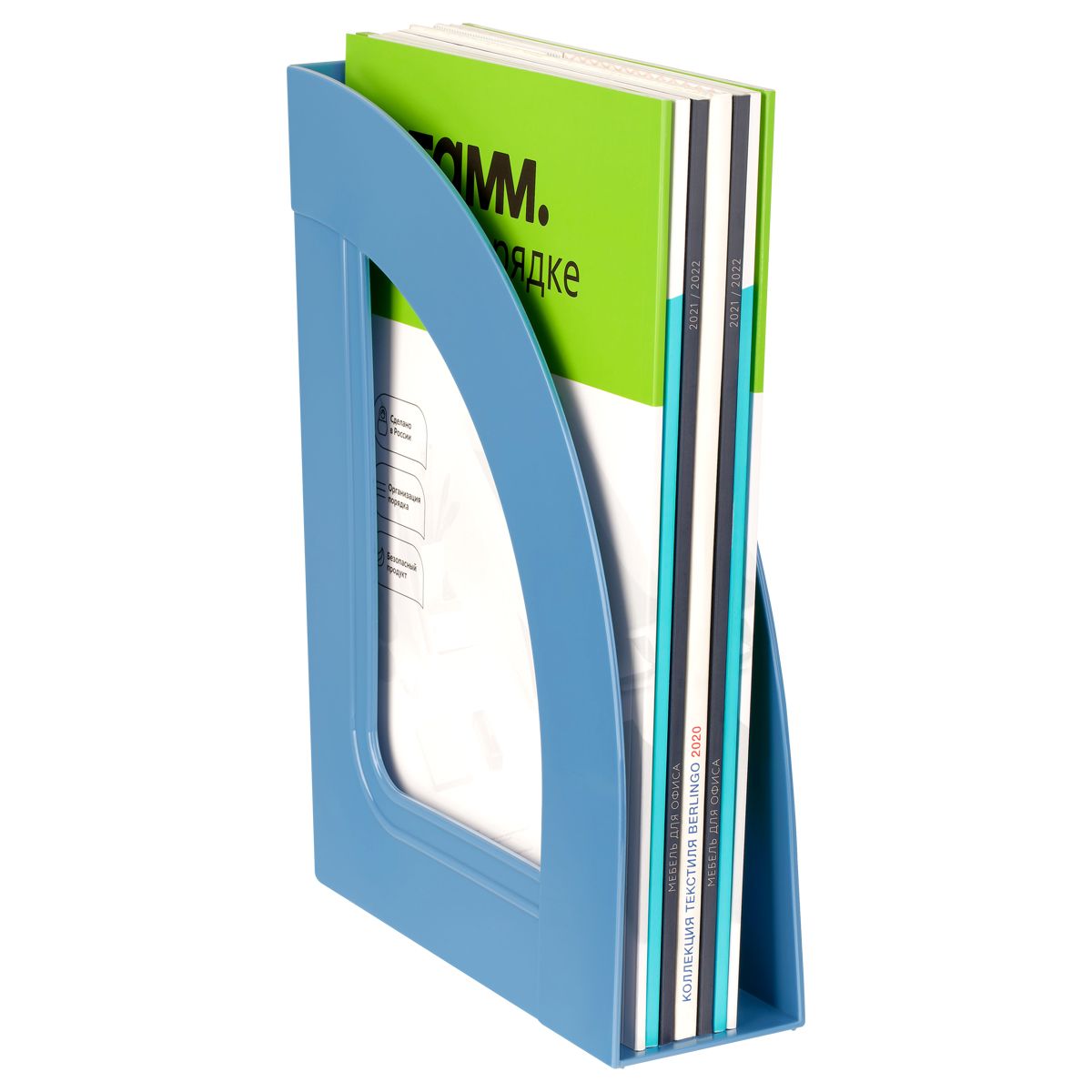 Лоток для бумаг вертикальный СТАММ "Респект", сине-голубой, ширина 70мм