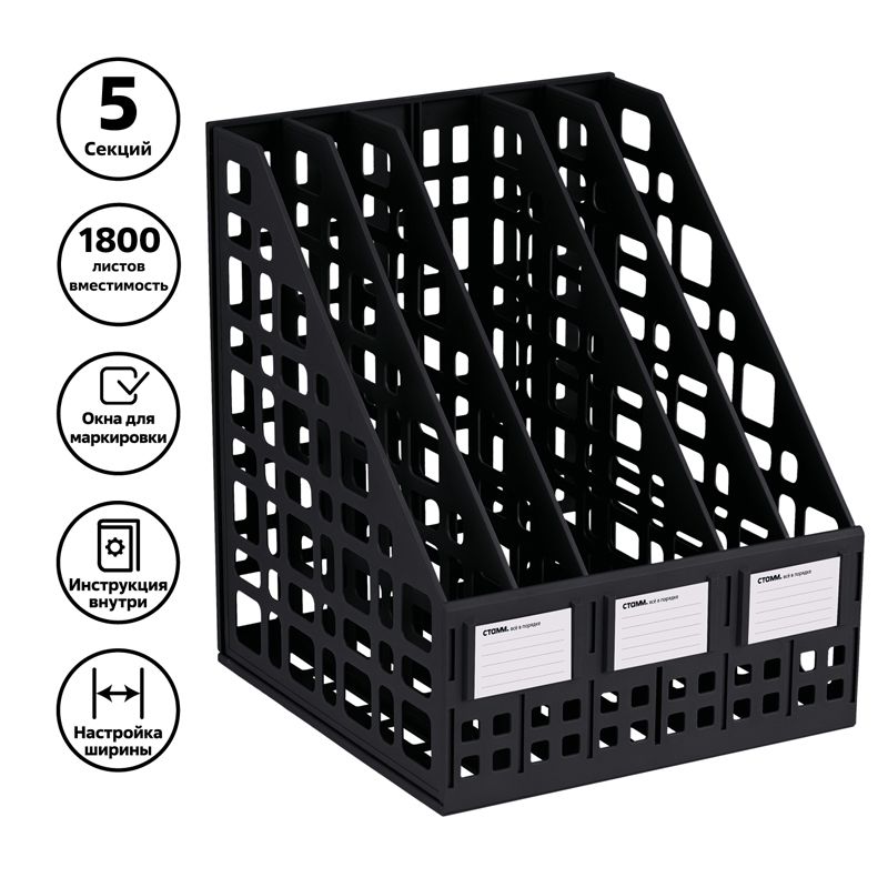 Лоток для бумаг вертикальный СТАММ, сборный, 5 отделений, черный