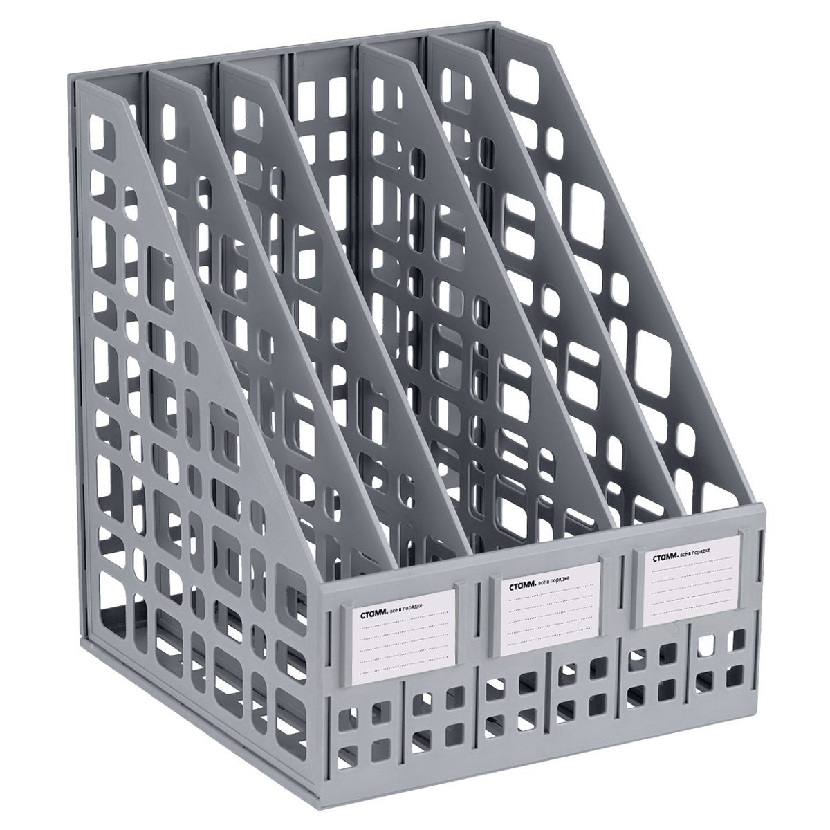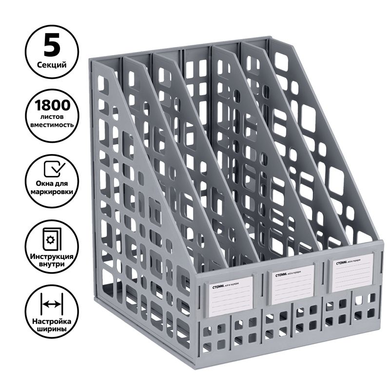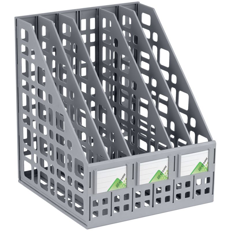 Лоток для бумаг вертикальный СТАММ, сборный, 5 отделений, серый