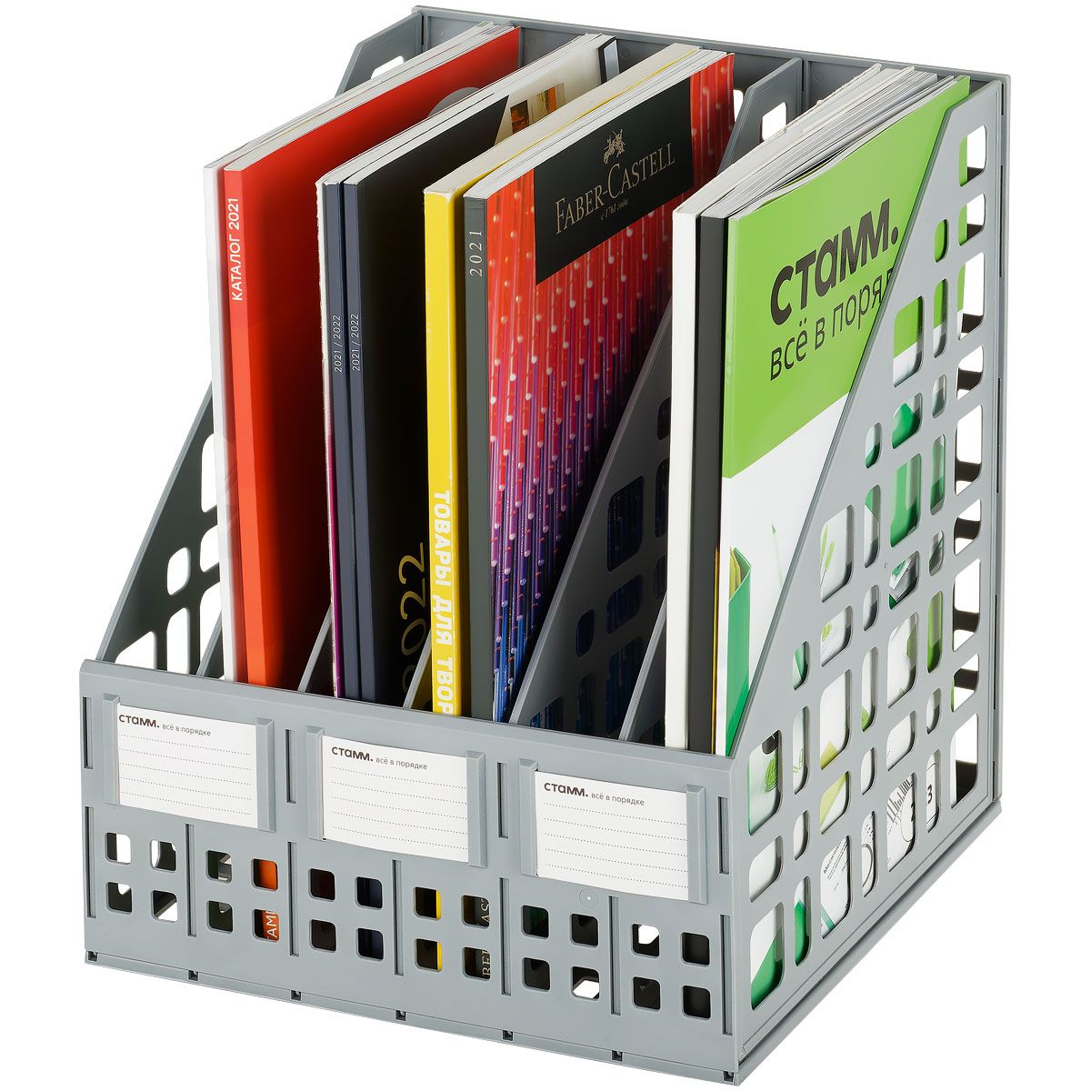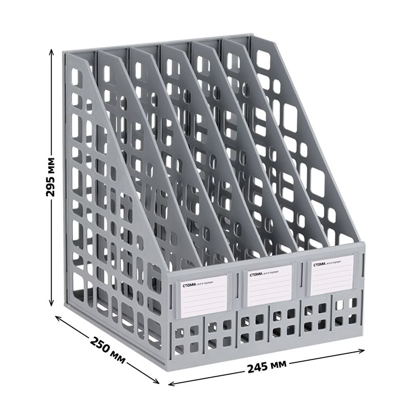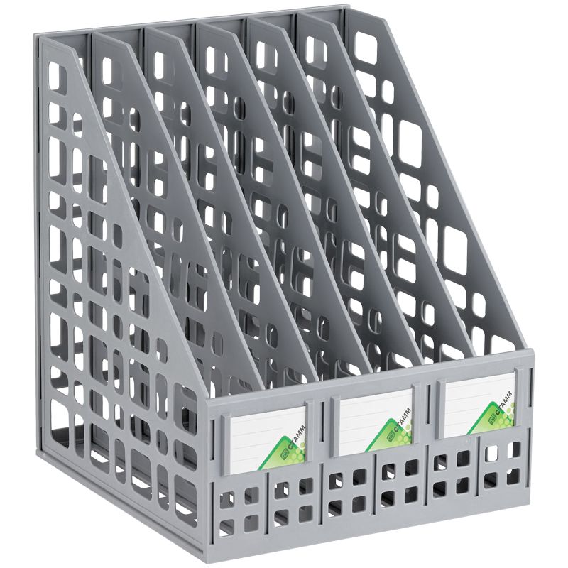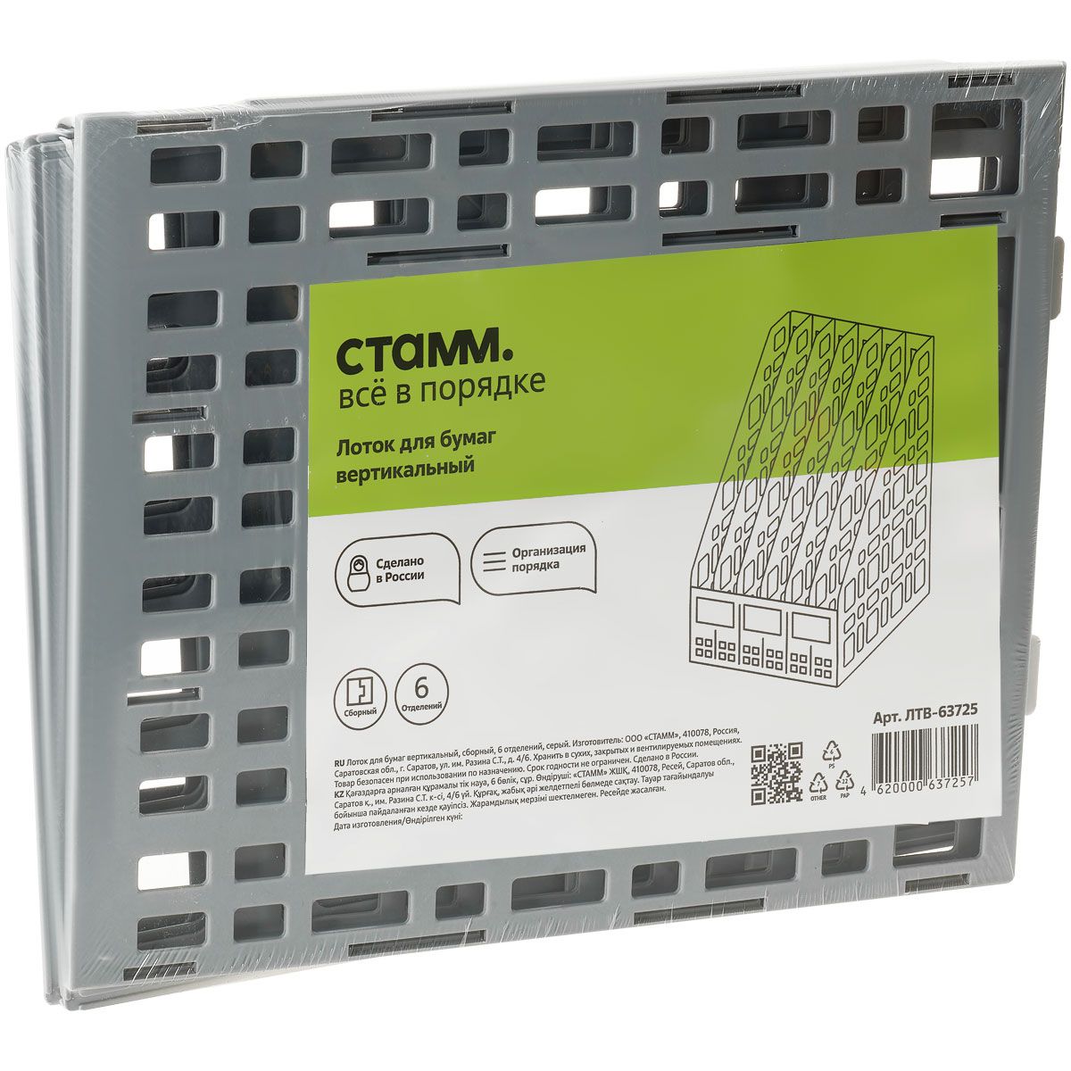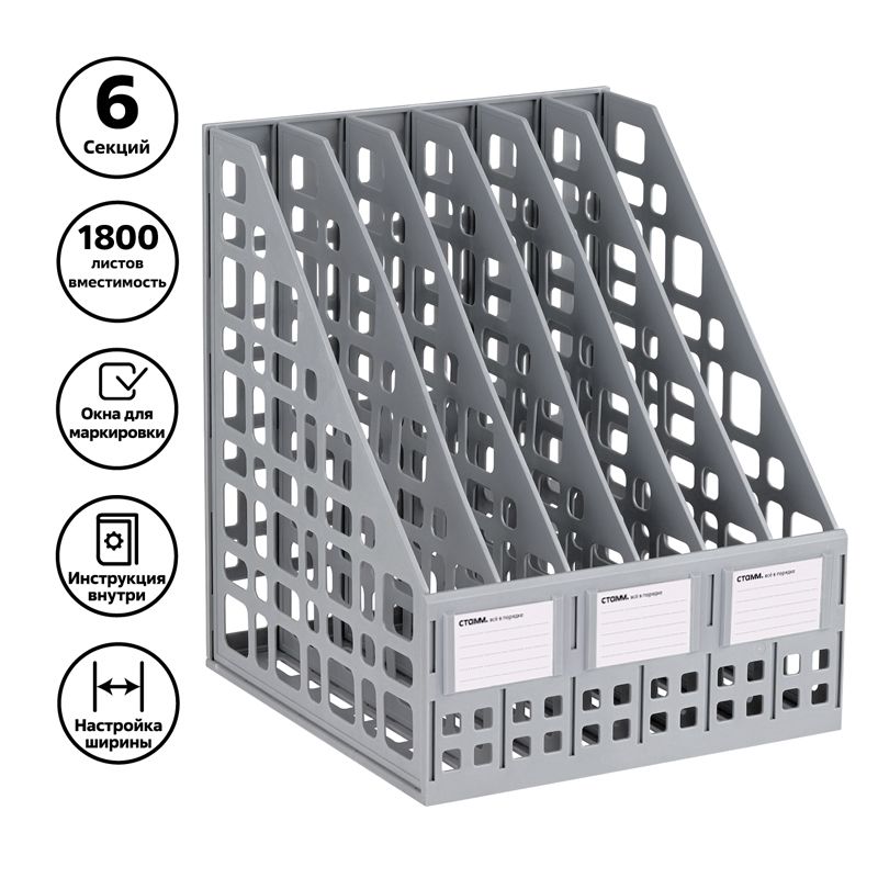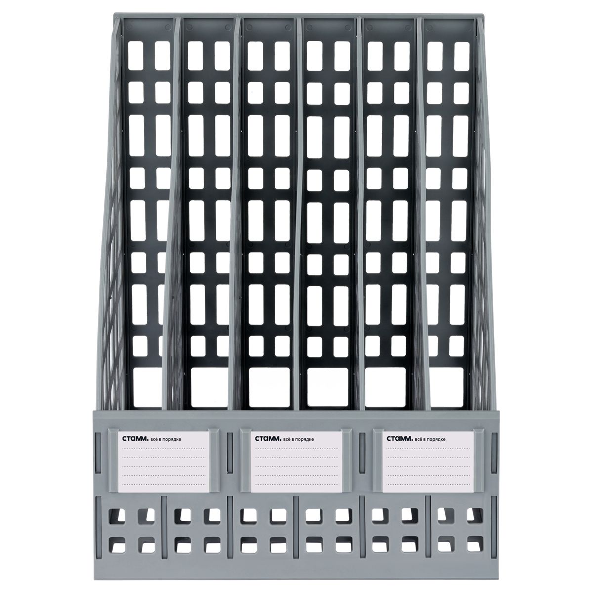 Лоток для бумаг вертикальный СТАММ, сборный, 6 отделений, серый