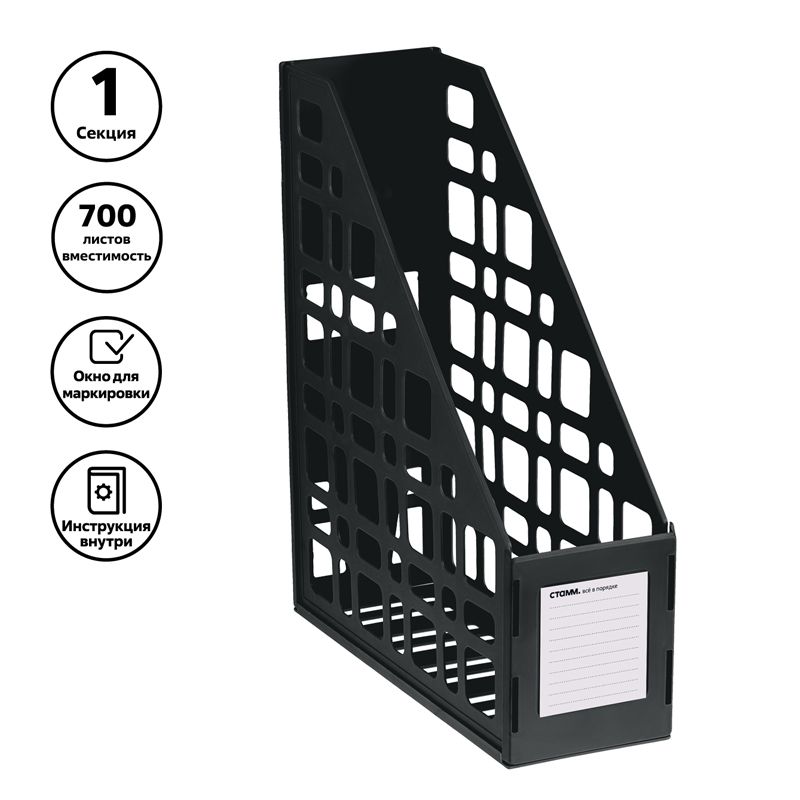 Лоток для бумаг вертикальный СТАММ, сборный, черный