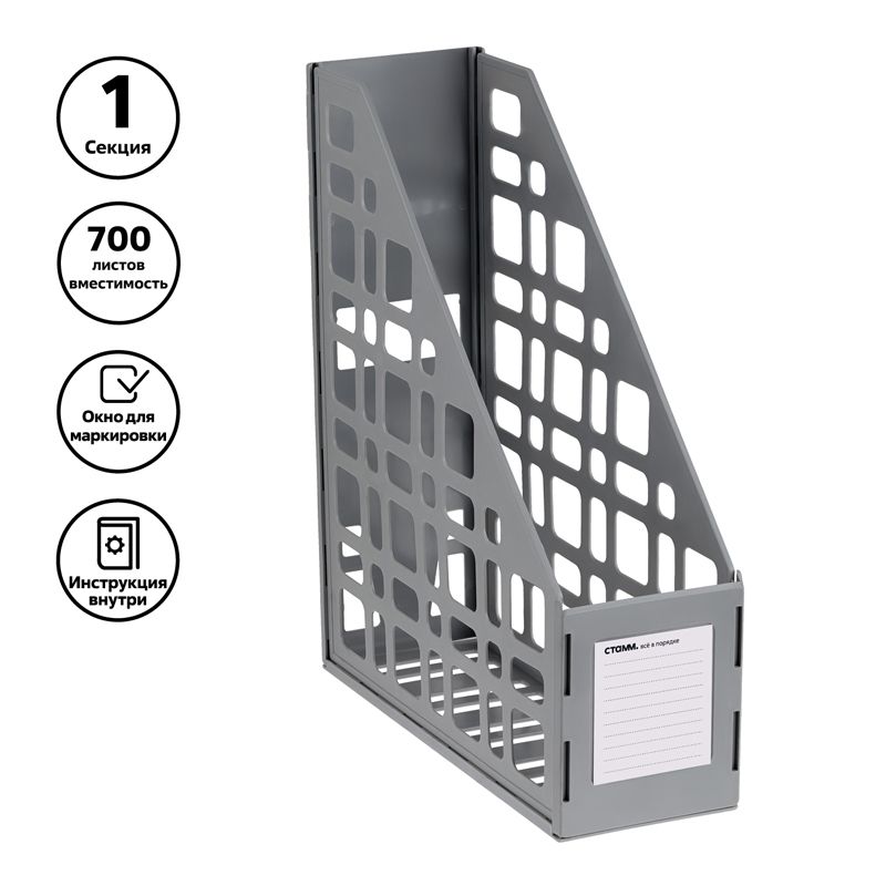 Лоток для бумаг вертикальный СТАММ, сборный, серый