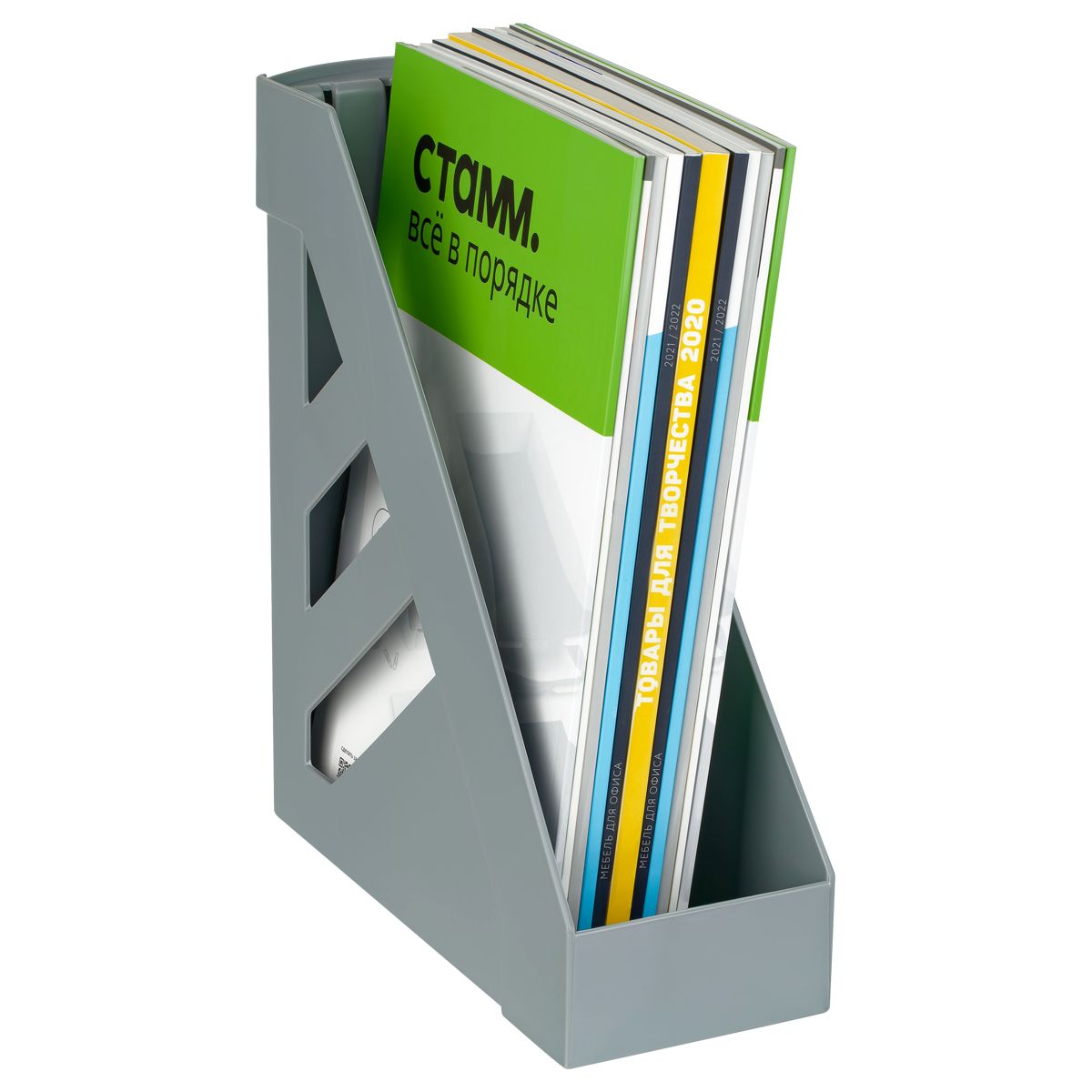 Лоток для бумаг вертикальный СТАММ "Стандарт", серый, ширина 100мм