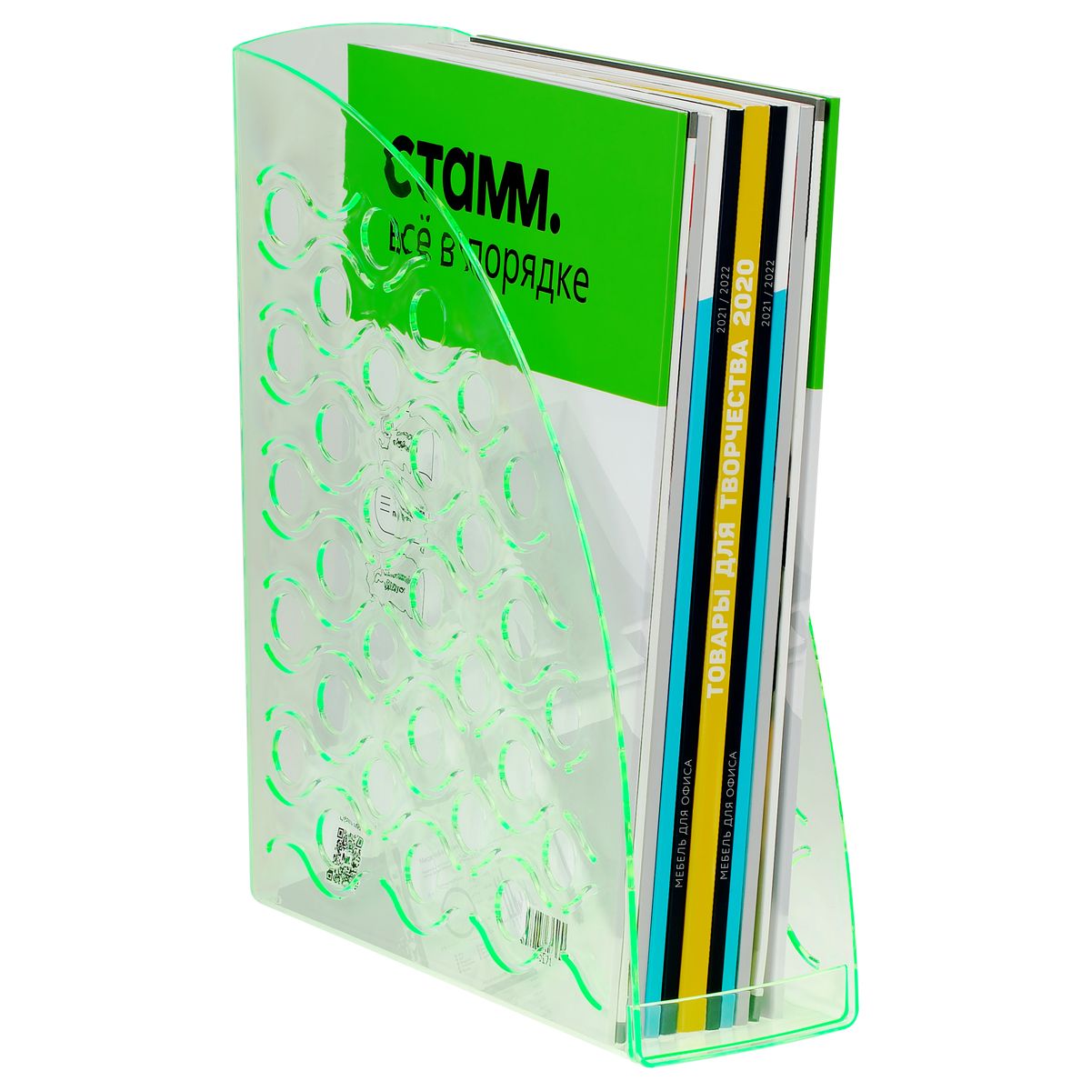 Лоток для бумаг вертикальный СТАММ "Вега", тонированный неоновый зеленый, ширина 90мм