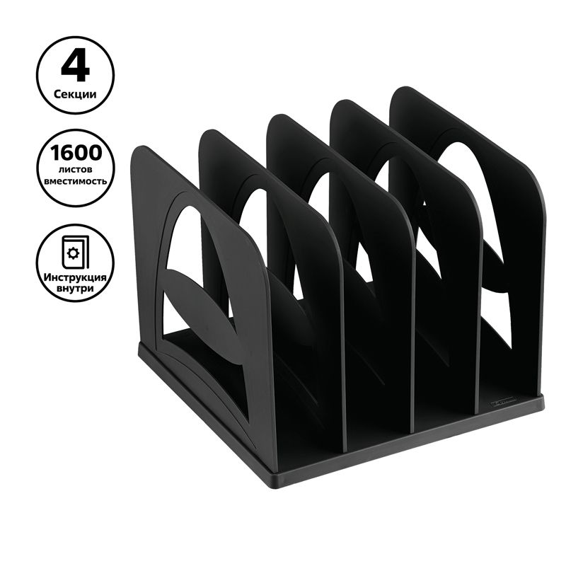 Лоток-сортер вертикальный СТАММ, сборный, 4 отделения, черный
