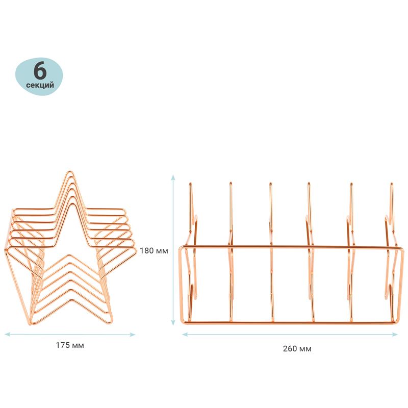 Подставка для бумаг и писем MESHU "Rose Gold. Stars", металл, 6 секций