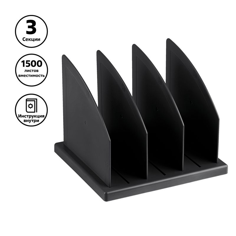 Подставка для журналов и бумаг СТАММ, сборная, 3 отделения, черная