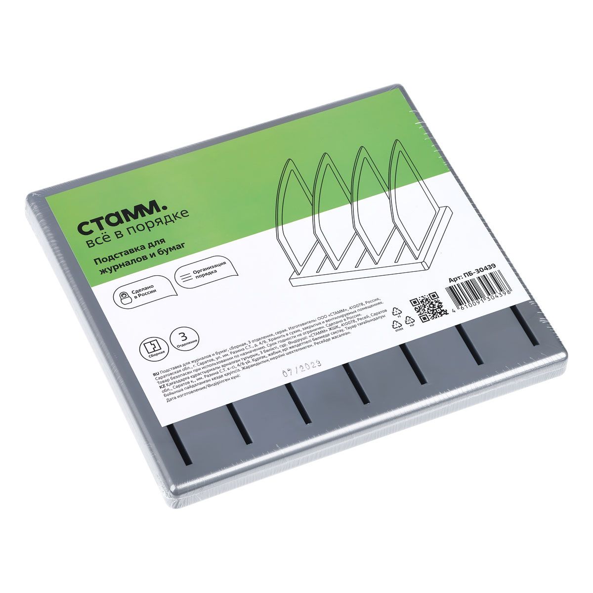 Подставка для журналов и бумаг СТАММ, сборная, 3 отделения, серая