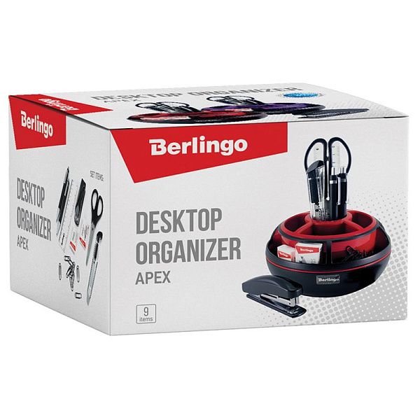 • Компактный набор "Berlingo BR, 9 предметов" освобождает стол от беспорядка и помогает сосредоточиться на работе.