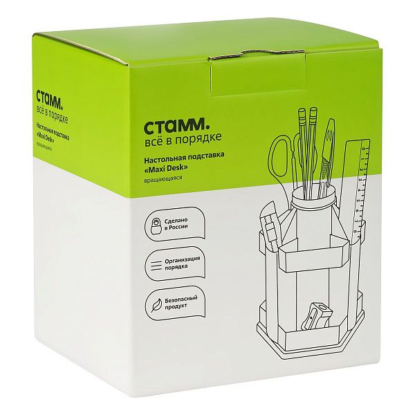 - Вращающийся органайзер "OfficeSpace Офисный" (13 предметов) позволяет быстро находить ручку, блокнот или скрепку.
