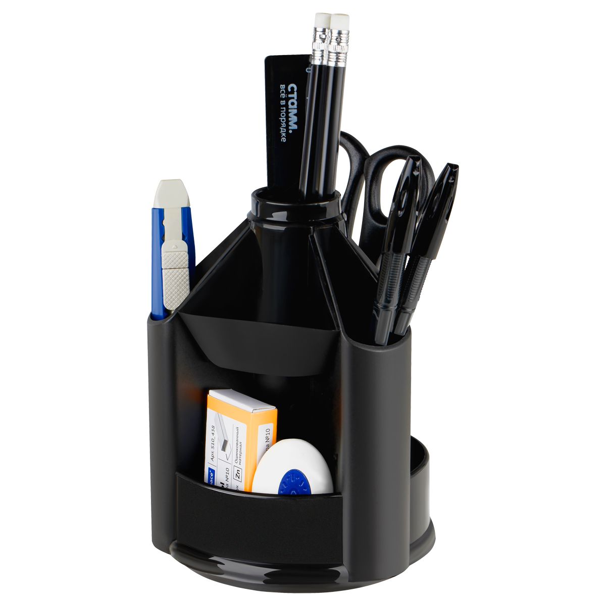 Набор канцелярских принадлежностей СТАММ "MiniDesk", 13 предметов, вращающийся, черный