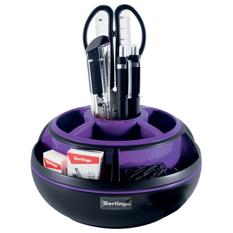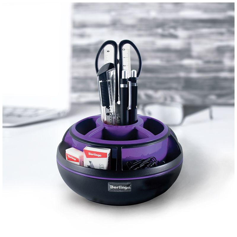 Настольный органайзер Berlingo "Apex", 9 предметов, вращающийся, черный/фиолетовый
