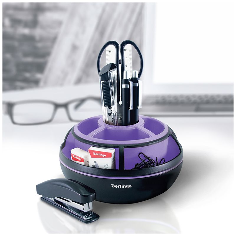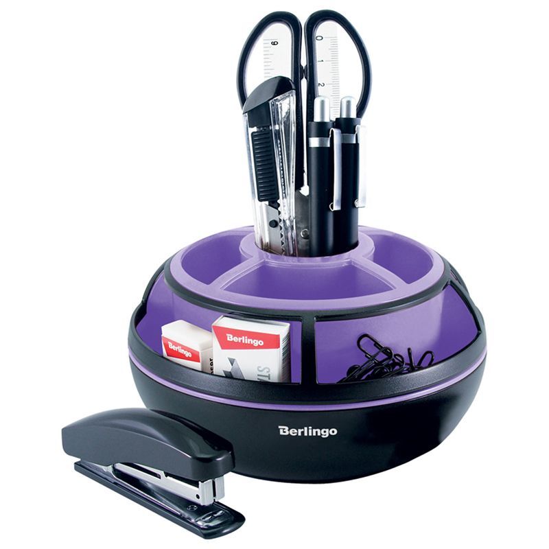 Настольный органайзер Berlingo "Instinct", 9 предметов, вращающийся, черный/лаванда