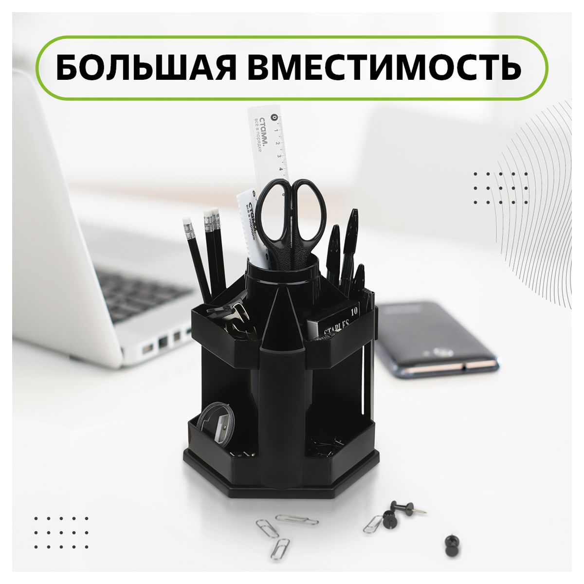 Настольная подставка СТАММ "Maxi Desk", пластиковая, вращающаяся, черная