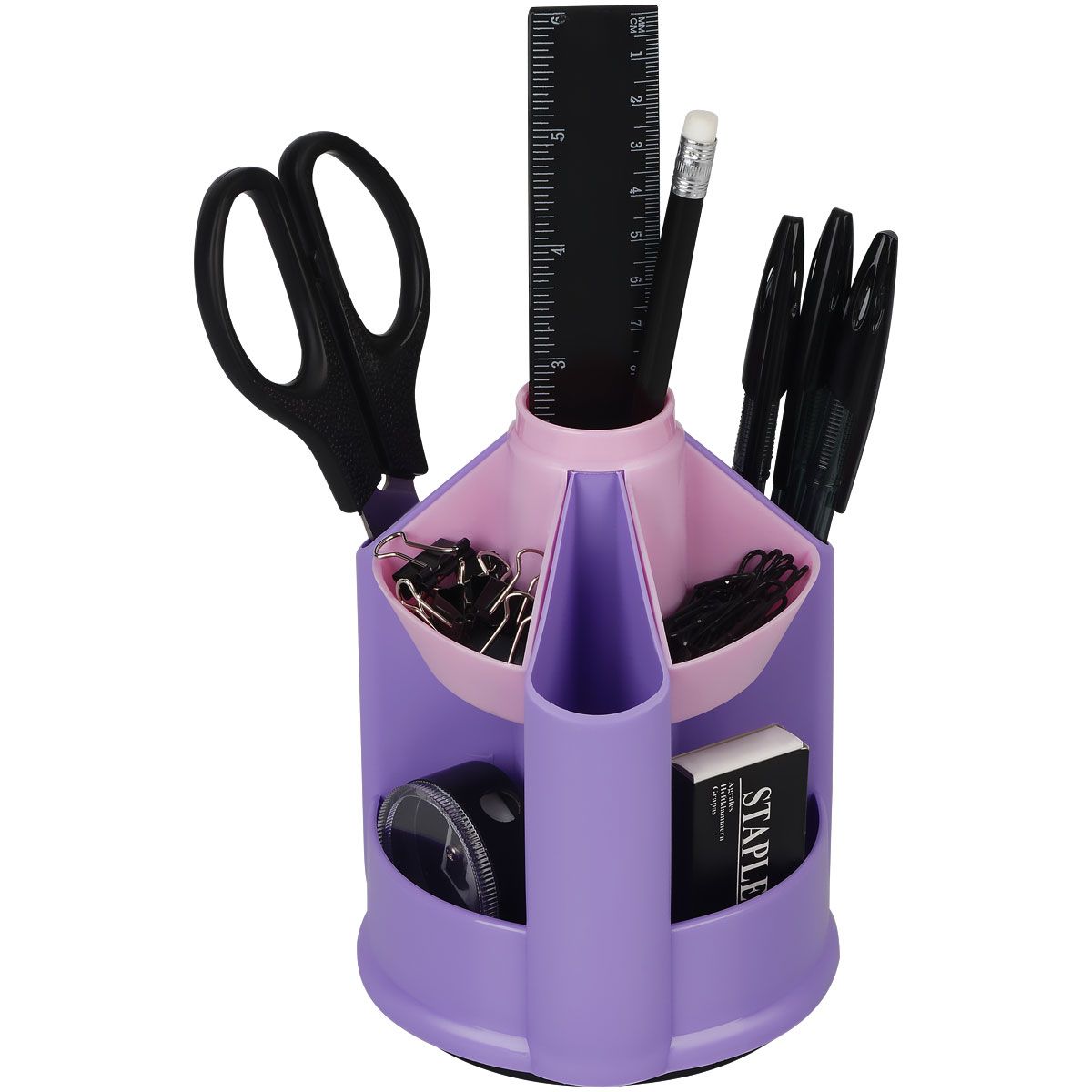 Настольная подставка СТАММ "Mini Desk", пластиковая, вращающаяся, фиолетовый/розовый