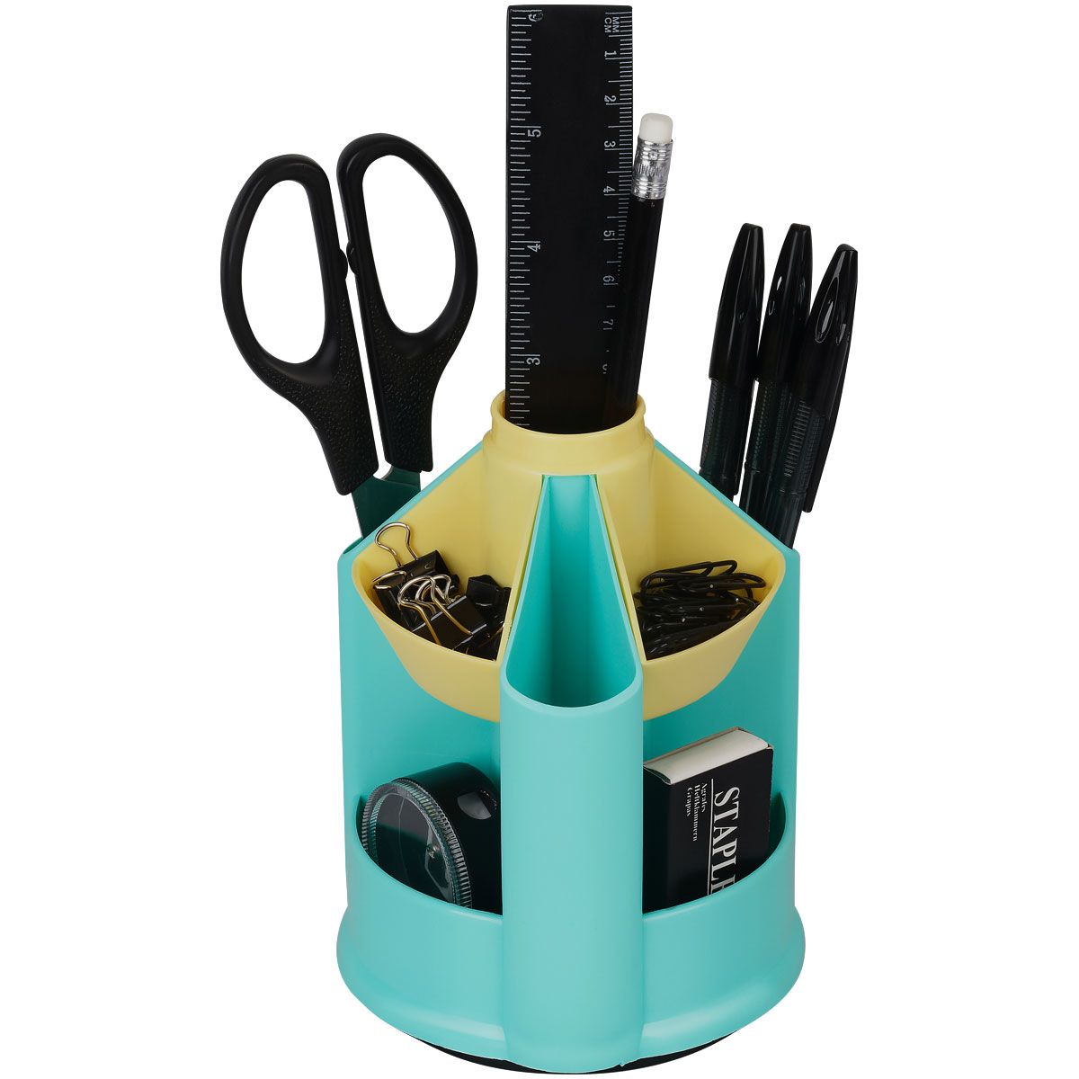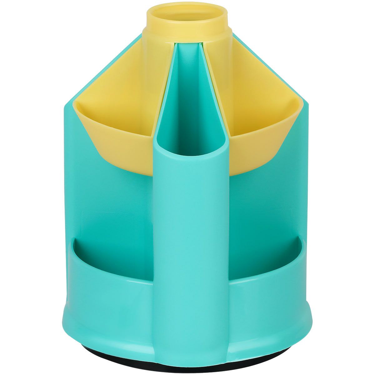 Настольная подставка СТАММ "Mini Desk", пластиковая, вращающаяся, мятный/желтый