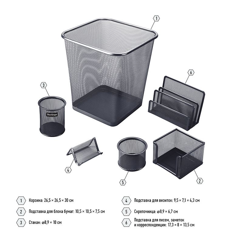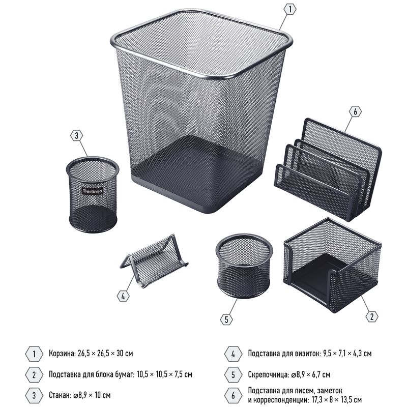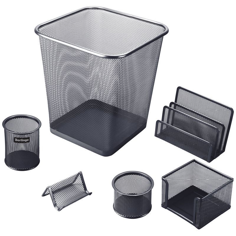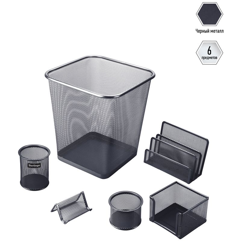 Настольный набор из металла Berlingo "Steel&Style", 6 предметов, с корзиной, черный