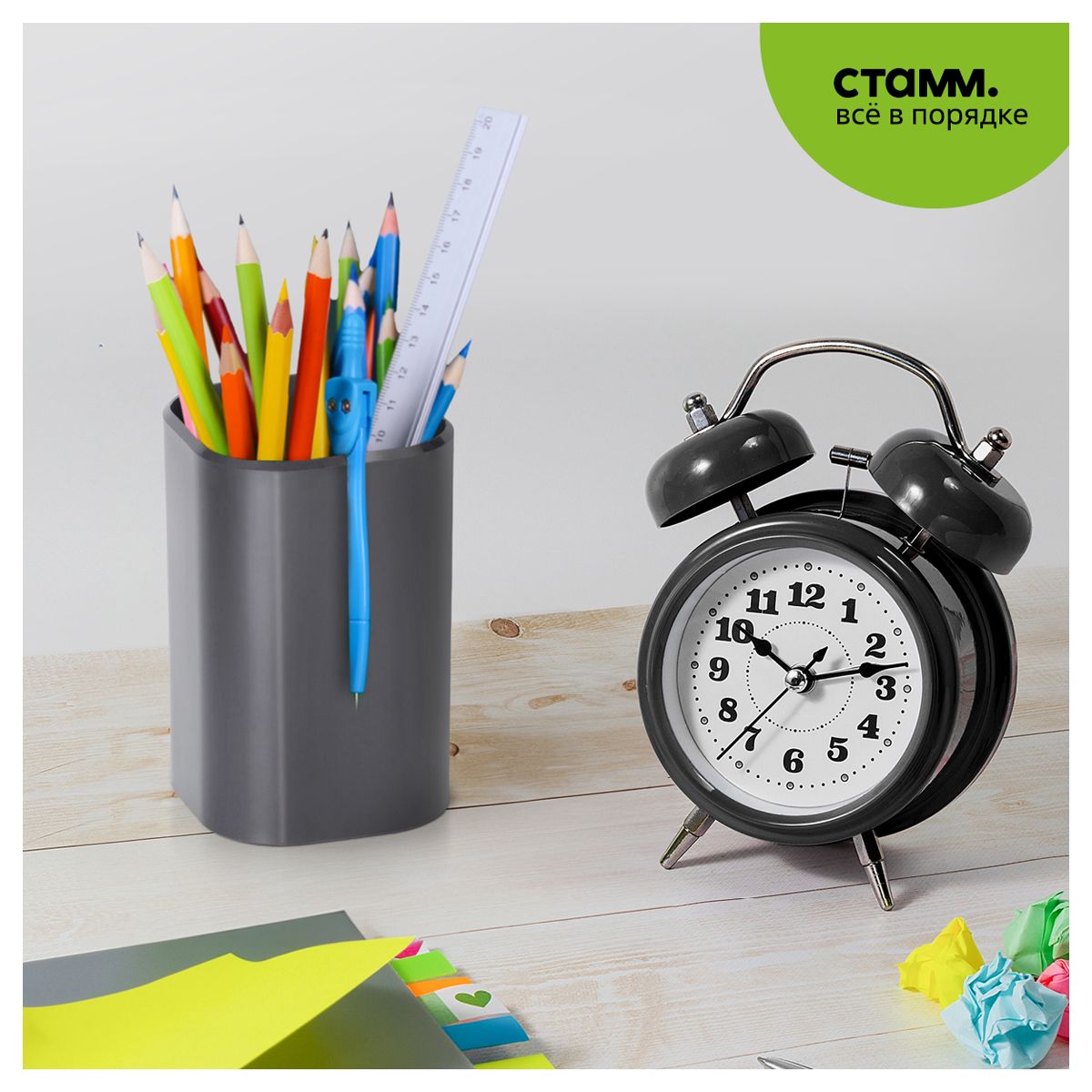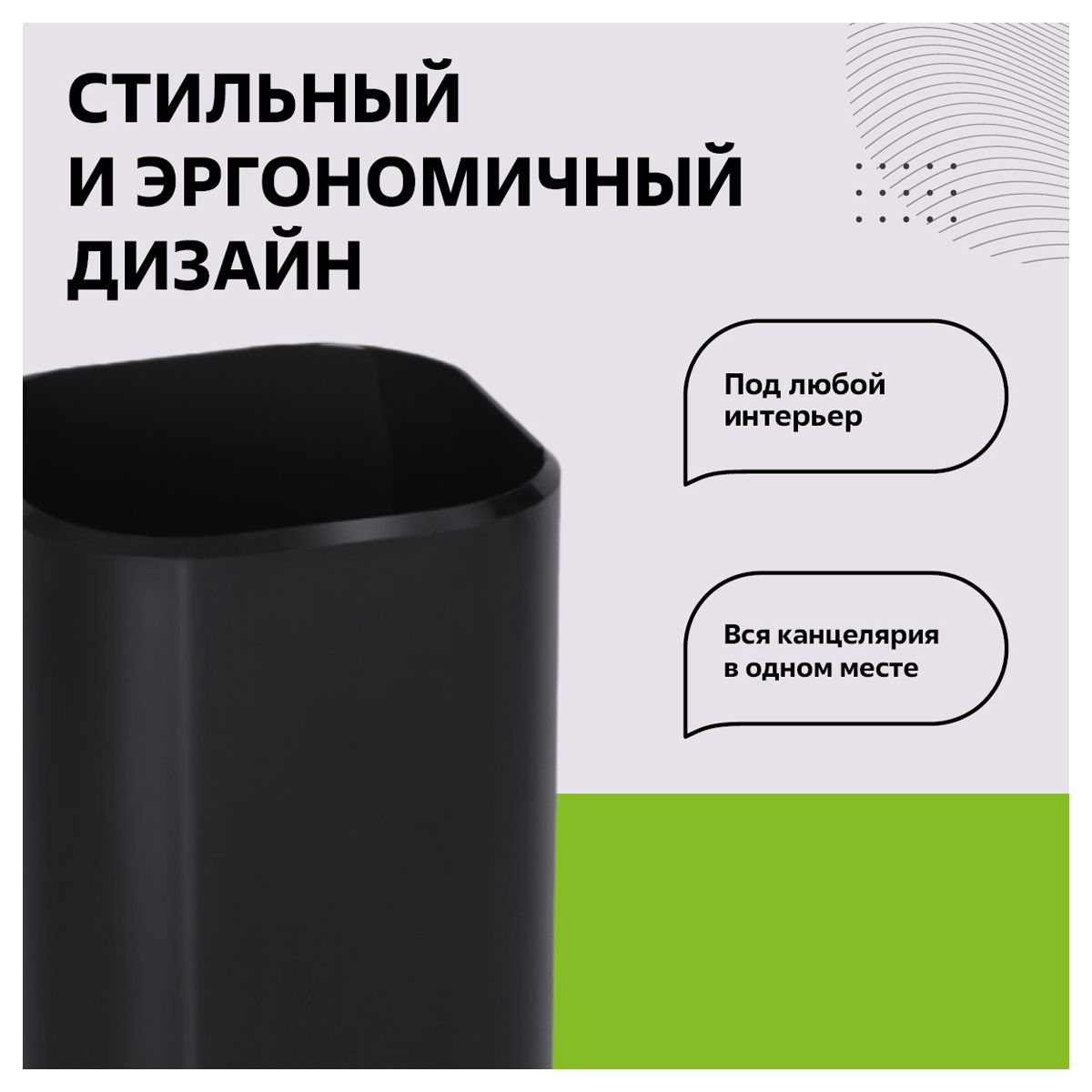 Подставка-стакан СТАММ "Фаворит", пластиковая, квадратная, черная