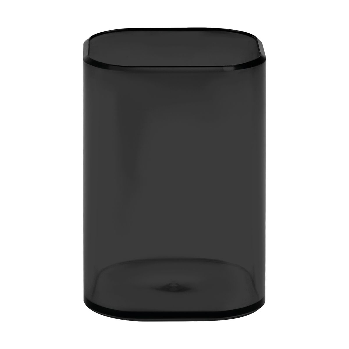 Подставка-стакан СТАММ "Фаворит", пластиковая, квадратная, тонированная черная