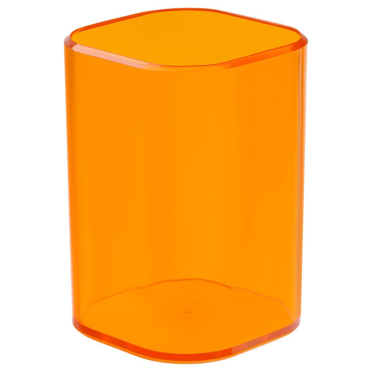 Подставка-стакан СТАММ "Фаворит", пластиковая, квадратная, тонированная оранжевая