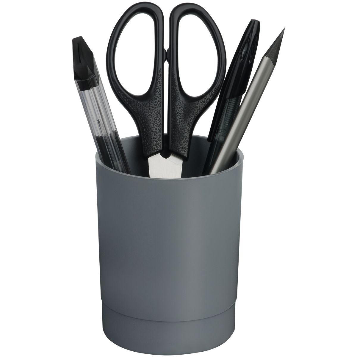 Подставка-стакан СТАММ "Лидер", пластиковая, круглая, серая