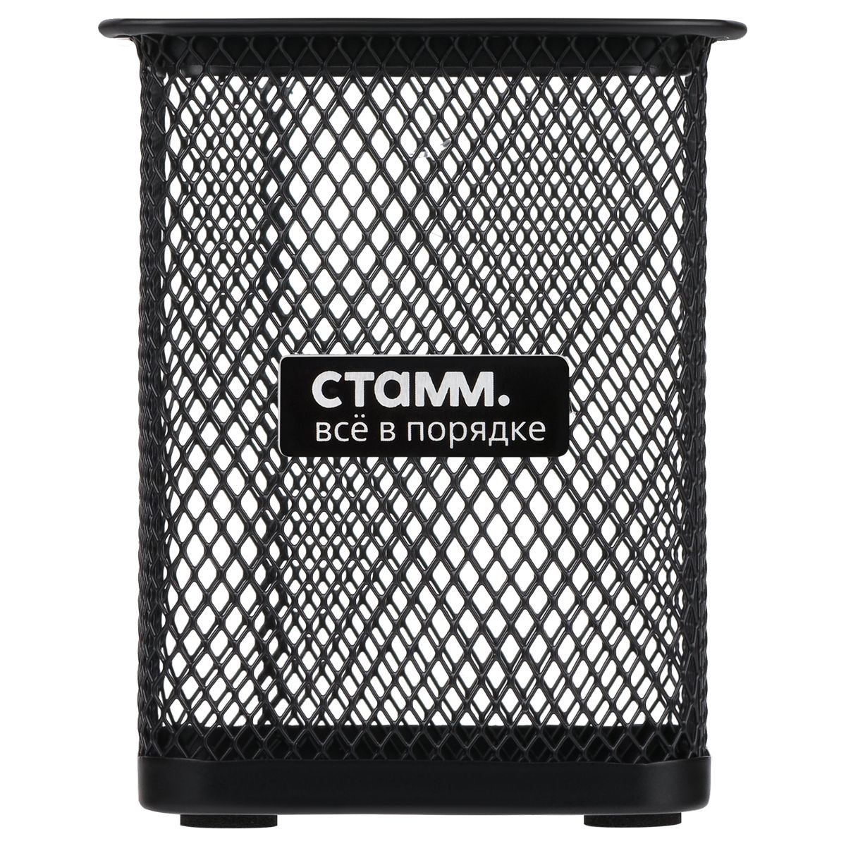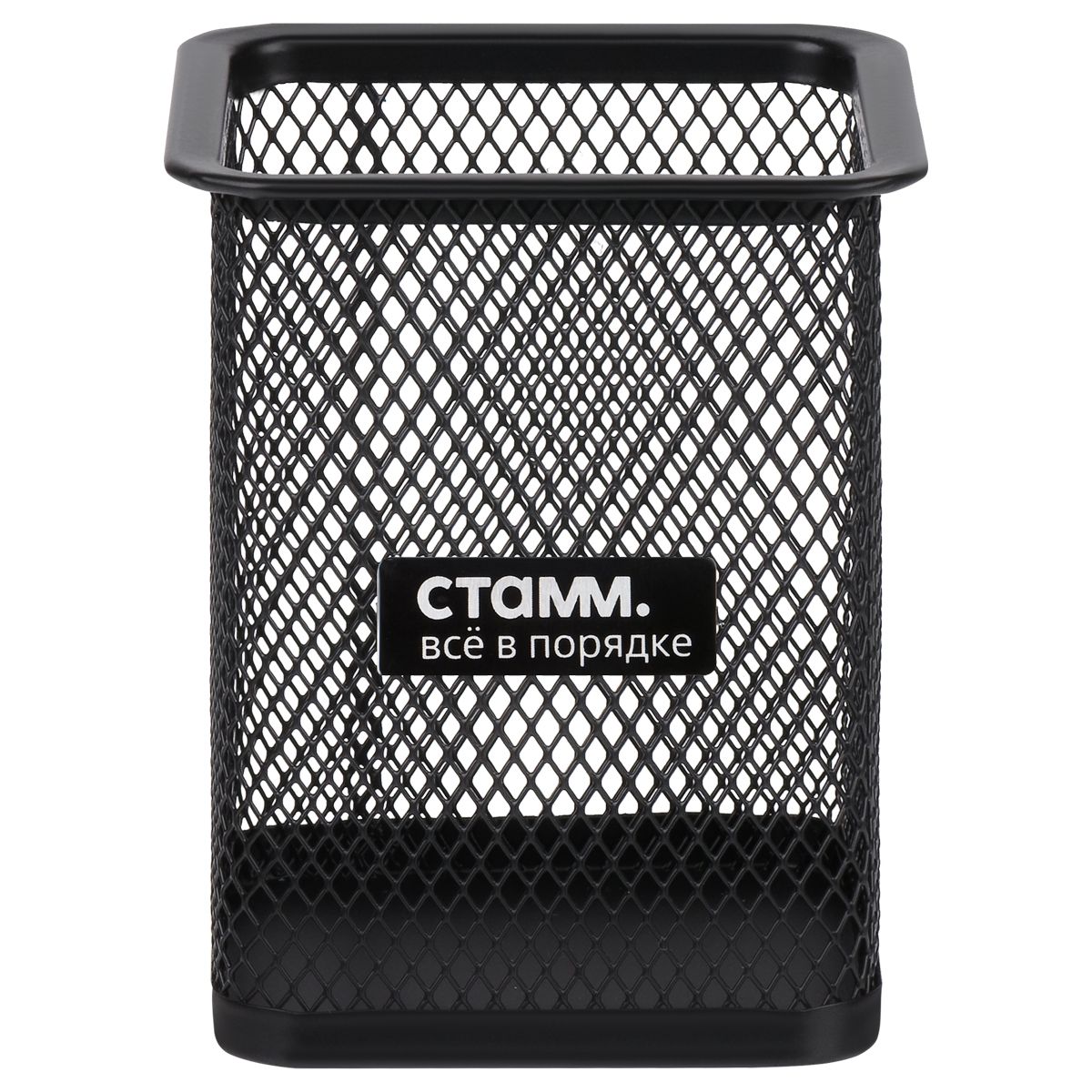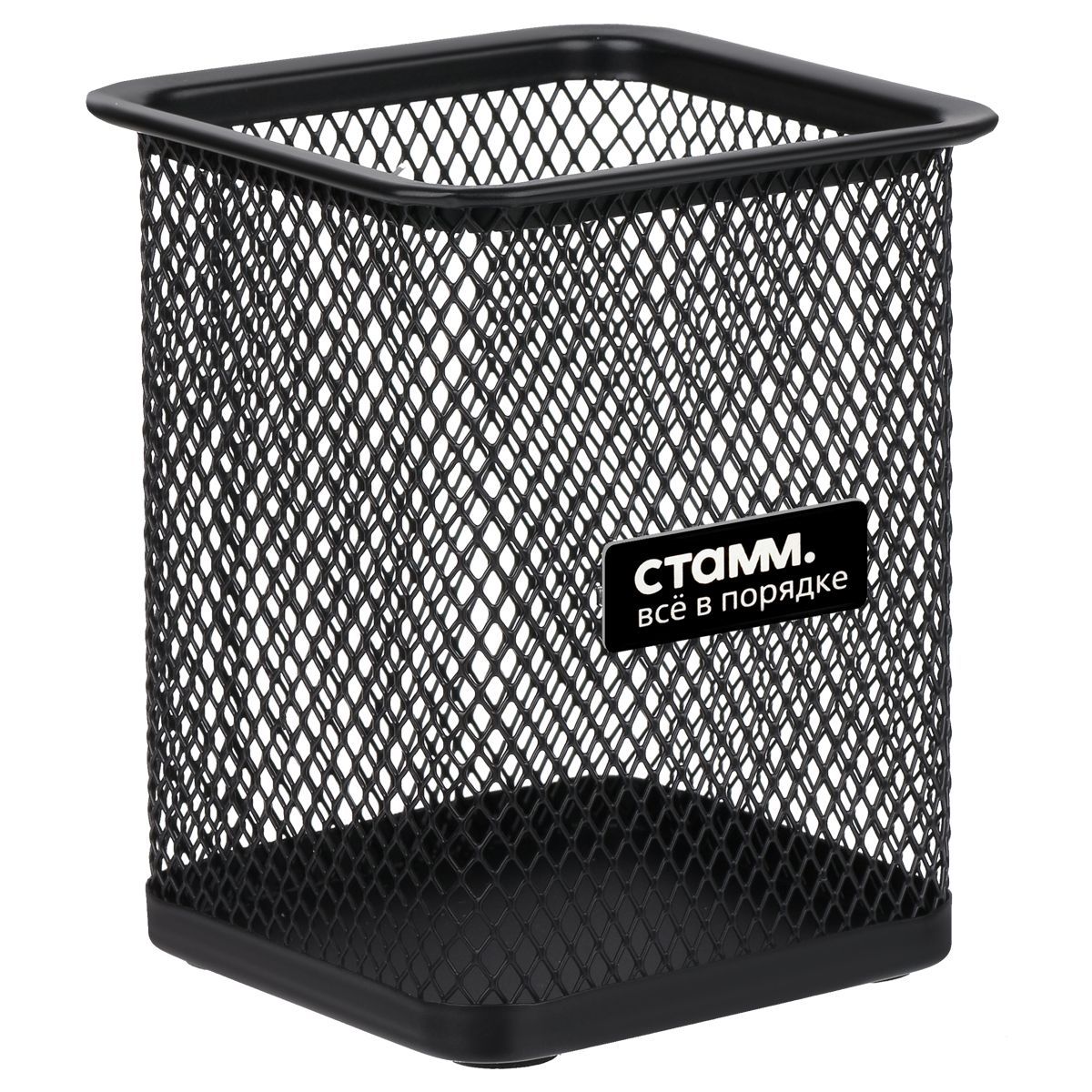 Подставка-стакан СТАММ, металлическая, квадратная, черная