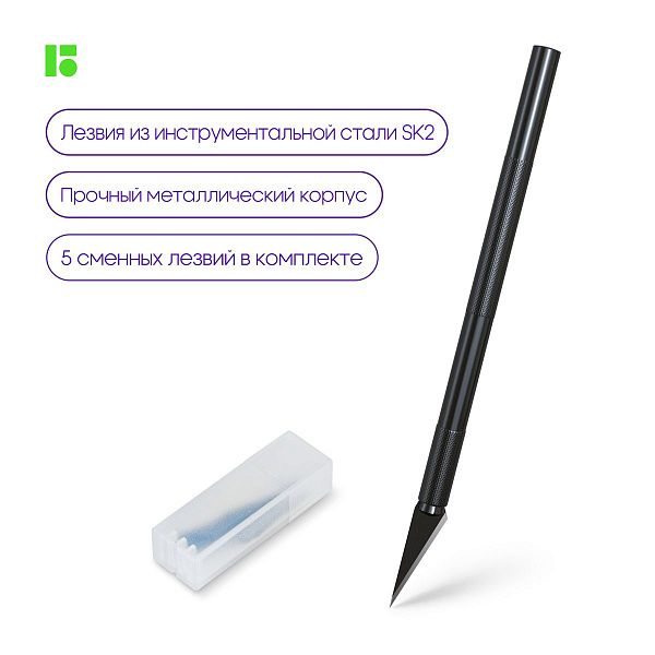 - Некоторые модели комплектуются запасными лезвиями и металлическими направляющими, например, нож-скальпель "Berlingo".