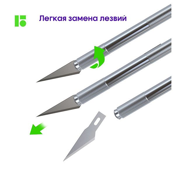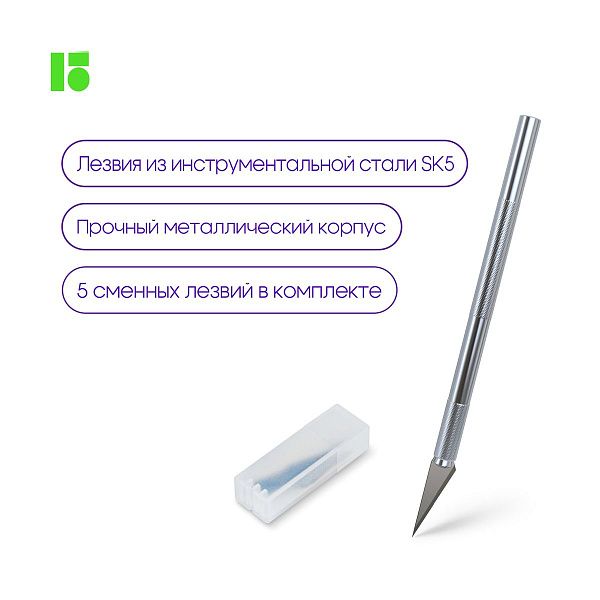 - Некоторые модели комплектуются запасными лезвиями и металлическими направляющими, например, нож-скальпель "Berlingo".