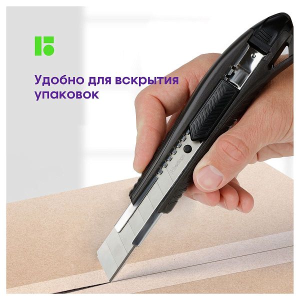 - Лезвия 18 мм, как у "OfficeSpace, 18 мм", подходят для работы с плотной бумагой и упаковочными материалами.