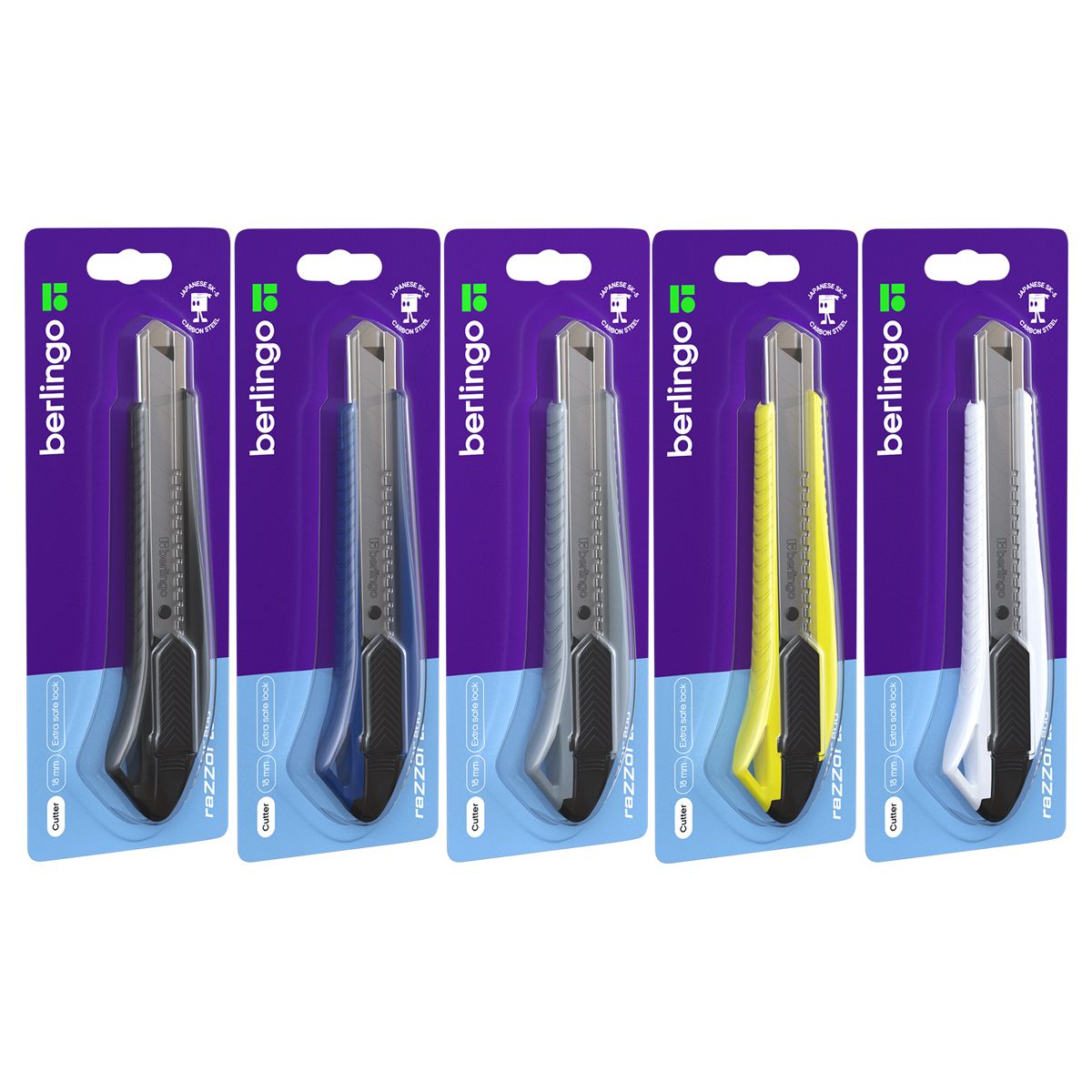Нож канцелярский 18мм Berlingo "Razzor 200", auto-lock, металл. направл., ассорти, европодвес